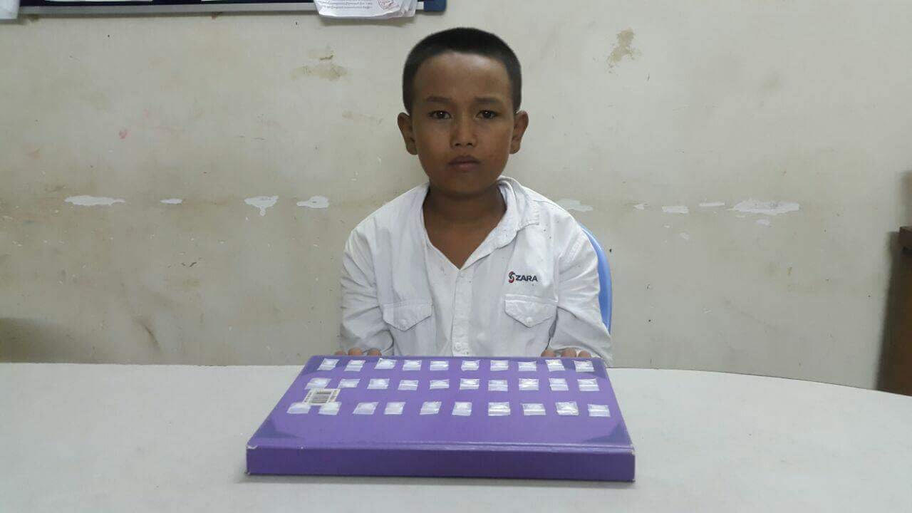前天下午,金边市堆谷区巡警在万谷2分区火车轨道一带,逮捕到一名涉嫌分销毒品的11岁男童,起获30包毒品。