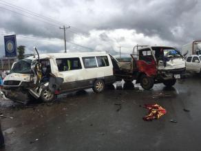 一辆卡车超越前方汽车时,意外直撞反方向车道的一辆厢型车,造成14人受伤。