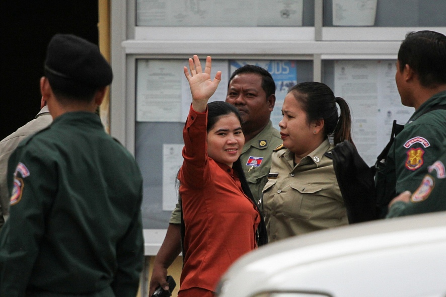 (金边讯)高等法院將于下月8日,针对迭万妮与3名万谷湖妇女“侮辱公务员”和“阻差办公”案件,宣布裁决。 高院是于昨天开庭审理迭万妮等4名妇女的上诉案件,过后宣布將于下月8日下判。 迭万妮和另3名万谷湖妇女,即贡沾塔、宝草丽和欣蒙,被控于2011年11月在金边市府大楼外“侮辱公务员”和“阻差办公”,触犯《刑事法》第502条文及504条文“侮辱公务员罪”和“阻差办公罪”。金边初级法院于去年9月裁决4人罪名成立,判处入狱半年。 4人对判决不服并上诉至中院,惟中院于今年2月驳回4人上诉,决定维持初院判决。 目前,迭万妮因涉及另一宗案件而继续被羈押,另3名被告则获准保外候审。 迭万妮也被指涉及于2013年3月13日在独立碑附近(洪森官邸前)发生的暴力衝突事件,而被法官援引《刑事法》第216条文,即蓄意严重伤人罪提控。 万谷湖妇女迭万妮被带上高等法院 |