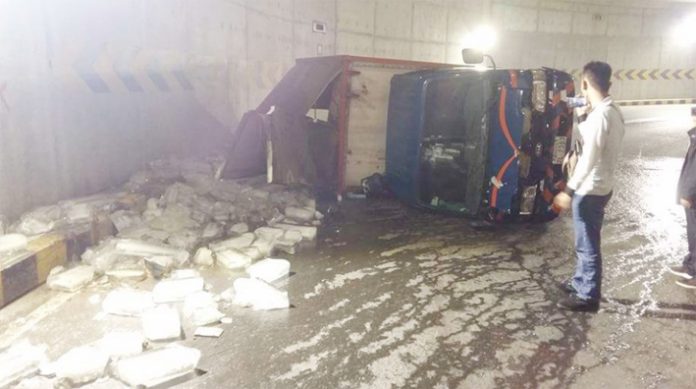 ![]() 【本报消息】一辆运冰的韩国产汽车行驶至拐弯时不慎翻覆,致使冰块散落一地,司机则逃逸无踪。 该事件是于8日凌晨4点30分左右,发生在堆谷区万沙兰分区的宋仁芷立交桥地下路。 据现场目击者说,事发时,有一名男子开着一辆运冰的韩国产汽车(车牌金边2L-7303)沿莫尼列大道由西向东行驶。到了拐弯时不慎翻车,导致车上的冰散落一地,而司机弃车逃走。 出事后,当地警方迅速赶往现场调查,并把肇事车拖至金边陆路交通办事处,等候处理。(速曼/思雅) |