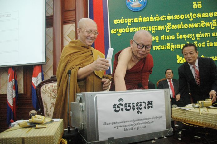 ![]() 【本报消息】柬埔寨第四届参议院选举(非普选)的参选政党编号抽签仪式于今日上午,在国家选举委员会总部正式登场,布格里僧王和嫩爱僧王出席主持这次政党编号抽签仪式。 参加本届参议院选举共有4个政党,即柬埔寨人民党抽到1号、柬埔寨青年党抽到2号、柬埔寨国籍党抽到3号和奉辛比克党抽到4号。 国家选举委员会主席瑟本霍在仪式上表示,第四届参议院选举的筹备工作按照原定的计划和日期如常进行。他指出,第四届参议院选举是以非普选进行,候选人和投票人是由在位的议员和来自各选区的乡、分区理事会成员。本届参议员共有123个席位,乡、分区理事会成员有11,572人。 瑟本霍主席指出,第四届参议院选举(非普选)投票将于2018年2月25日(星期日)举行。本届参议院选举议员席位增加至62席,与上一届参议院选举相比增加了1个席位,其中58个席位则由非普选投票产生。另2名参议员由国王委任, 2名由国会绝对多数制投票委任。 他介绍说,全国25个省市共设8个选区,即第1个选区:金边市,有6个席位;第2个选区:磅湛省和特本克蒙省,有8个席位;第3个选区:干拉省,有5个席位;第4个选区:马德望省、卜迭棉芷省、暹粒省、奥多棉芷省和拜灵省,共有10个席位;第5个选区:茶胶省、贡不省和白马省,有7个席位;第6个选区:坡罗勉省和柴桢省,有7个席位;第7个选区:实居省、磅清扬省、菩萨省、国公省和西哈努克省,有9个席位;第8个选区:磅通省、柏威夏省、桔井省、上丁省、拉达那基里省和蒙多基里省,有6个席位。 瑟本霍表示,虽然第四届参议院选举是以非普选进行,但整个筹备工作都按照大选的四大阶段进行,即选举注册阶段、政党与候选人注册阶段、选举宣布阶段,以及投票/计票阶段。 应提的是,第四届参议院选举之前是定于2018年1月14日进行,但柬埔寨王国政府随后正式宣布,决定推迟柬埔寨第四届参议院选举到2018年2月25日举行。 王国政府并没有说明第四届参议院选举日期延迟的原因。但政府命令总理府部长、内政部长等政府相关部门负责人有效地执行好政府决议。(勇平) |