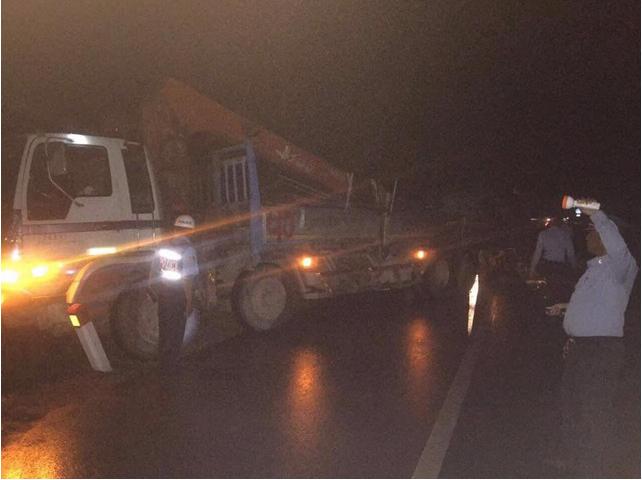 昨天凌晨4时在磅针省巴台县,一辆汽车撞上另一辆吊车,导致两人当场丧命。事发后,警方赶到现场善后。(柬埔寨星洲日报)
