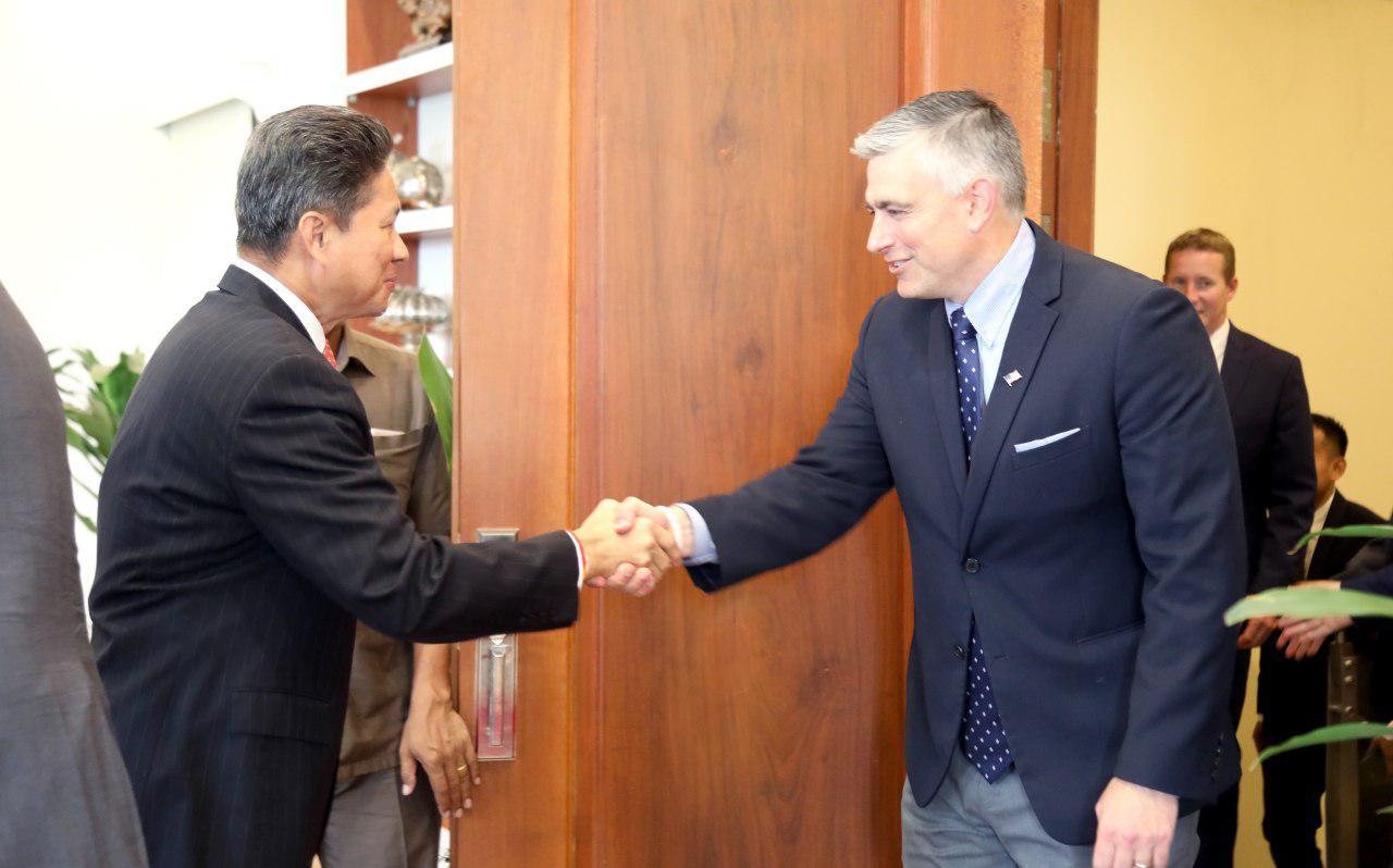| 国务部长兼公共工程和运输部长孙占托2018年5月9日在公共工程和运输部会见来自华盛顿参议员道格•埃里克森(Doug