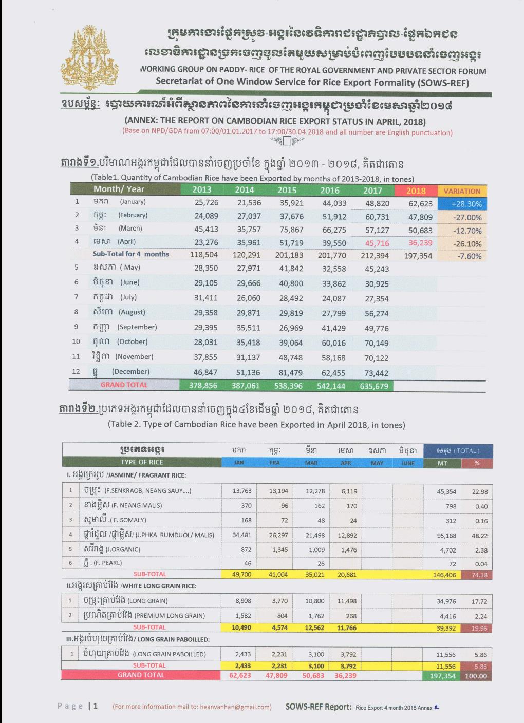 | 据柬埔寨农业部大米出口单一窗口秘书处10日公布的报告显示,今年前4个月,柬大米出口量近20万吨,同比下降7%。