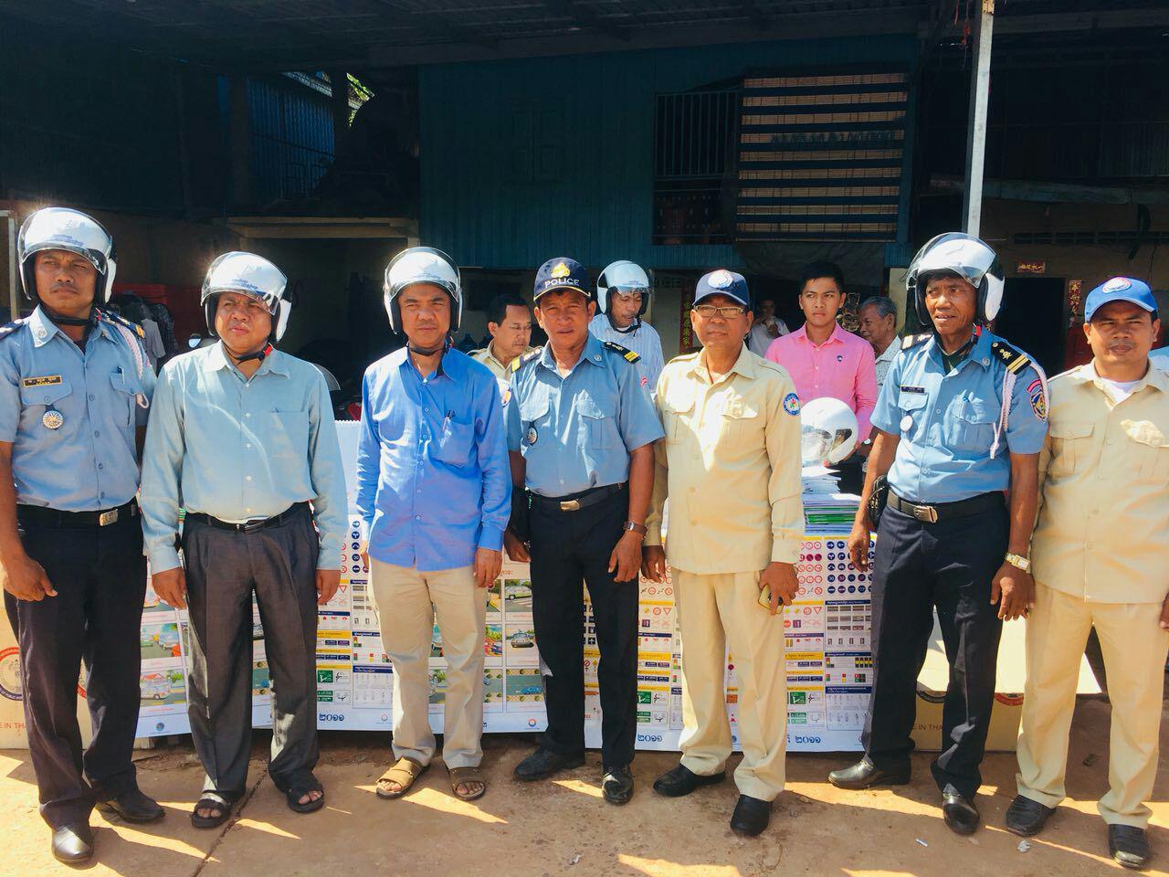 国公省副省长Sok Sothy和公共工程运输部部长兼道路安全秘书处主任安达沃,以及各区警务督察一起加入到要求公民戴行车安全帽的行动中来,并在全省各区普及道路交通法。