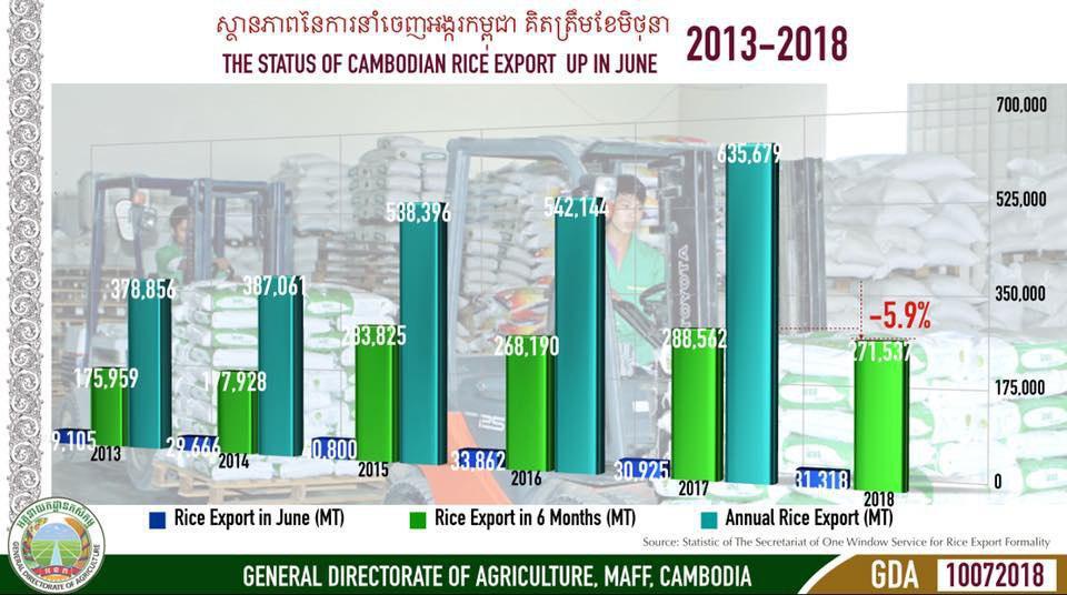 (金边讯)2018年上半年,柬埔寨的大米出口量约27万吨,同比下滑了5.9%。这是根据柬埔寨农林渔业部大米单一窗口秘书处的正式报告的消息。报告显示,今年1到6月,柬埔寨大米出口量为27万1537吨,较2017年上半年的28万8562吨相比下降了5.9%。 今年头6个月,中国是柬埔寨进口大米最多的国家,进口量超过6万吨,紧接着是法国进口量近4万吨,马来西亚进口量约2万吨。 此外,出口量最多的大米出口公司是以潘坡勋爵为董事长的柬埔寨绿色公司,大米出口量为2.6万吨,接着是City Rice公司,出口量为2.2万吨,以及 Apsara Rice 公司出口量2.1万吨。 应提的是,2017年全年,柬埔寨大米出口量约63万吨。 来自:fresh news |