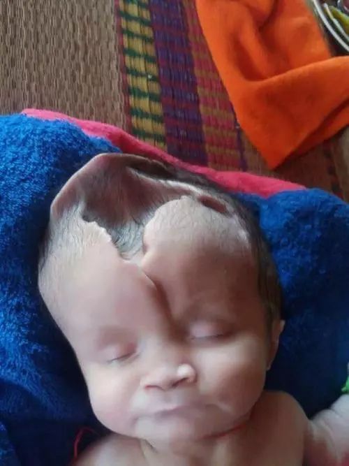 来自柬埔寨的2个月大的女婴Little Ah Neath,一生下来,她的头上就有一个“大坑”,她没有大脑,同时头部的头骨也缺失了一部分。 Little生下来以后,医生称她活不了多久时间就会死去,而Little打破了医生的语言,坚强的活了下来,如今已经2个月了,连医生都为之震惊,称她能活下来是一个奇迹。 Little被诊断出患有无脑畸形症,意思就是她天生没有大脑,因为这种病,导致她的头骨向后延伸,随着年龄的增加,头骨会延伸得越来越长。 当地的医生表示,Little的这种病非常罕见,目前很难找到能治疗这种怪病的医院,在住院2个月后,Little的母亲将她抱回了家。 Little的家里非常贫困,母亲为了给她看病,卖掉了房子和花光了所有积蓄,如今母亲还在努力的筹钱,希望Little能到国外接受更好的治疗。 |