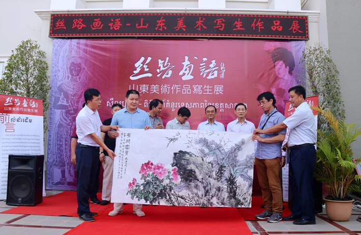 “丝绸之路”古已有之,体现了人类跨越阻隔,交流互鉴的愿望和毅力。而今“一带一路”被赋予了新的丰富内涵和深远意义。 不同文明之间的交流与合作是当今世界发展繁荣的重要渠道。为践行“一带一路”建设,加强中柬两国文化的深入对话,促进两国文化艺术的沟通与繁荣,由柬埔寨吴哥经典艺术馆主办的“丝路画语·山东美术作品展”暨“柬风鲁韵吴哥行·鲁渝美术家赴柬写生活动”于2018年12月22日在柬埔寨吴哥经典艺术馆拉开帷幕。 出席当天画展开幕式的嘉宾和艺术家有:柬埔寨王国柬华理事会轮值会长庄明强勋爵和夫人、黄焕明常务副会长、张建安常务委员;柬埔寨王国文化艺术部高级顾问苏达维先生; 皇家艺术学院副院长张良宗先生;柬埔寨金边皇家大学汉语中心主任周丽云先生等。 山东省美协主席,山东美术馆馆长张望为展览题写了展名。 展览展出了来自中国山东省张民生、杨大鲁、徐康、徐隆、赵军、于霞、海珠、李生、方辉、孙春龙及重庆市孙溢共十一位画家的50余幅精品力作。他们为柬埔寨的美术爱好者带来了一场丰富的视觉艺术盛宴。 本次展览及写生活动秉承“弘扬齐鲁传统文化,促进艺术创新共融”为宗旨和目的,同时为鲁渝美术界与柬埔寨中华文化爱好者搭建一个广泛交流的平台。在柬埔寨期间,艺术家们将用手中的画笔来描绘柬埔寨的异域风情和独特文化,把世界七大奇迹之一的吴哥古迹展示给更多的观者。据悉,此次展览由吴哥经典艺术馆主办,并得到山东美术馆的大力支持。 |