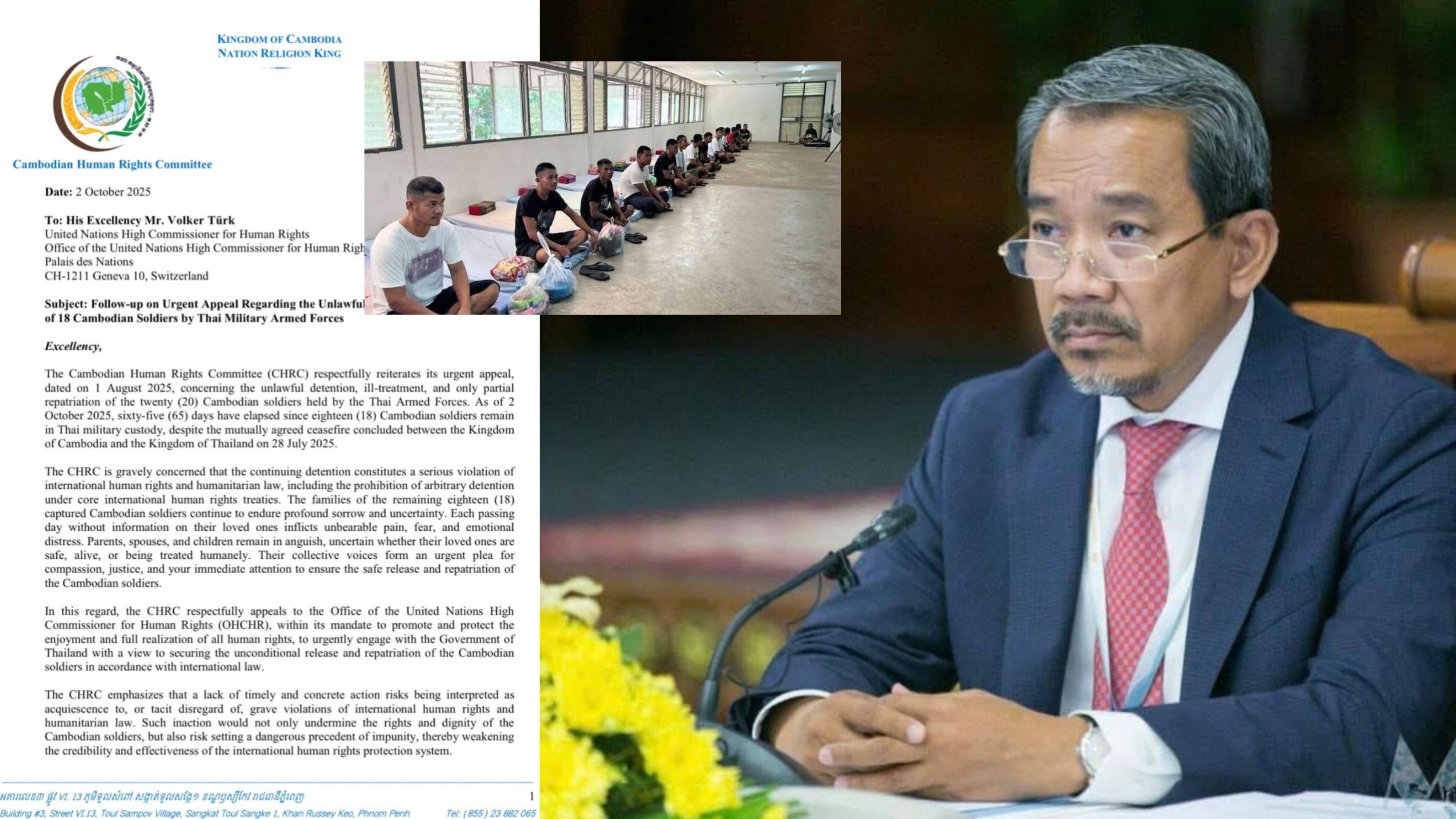 【柬埔寨头条综合报道】据柬媒消息,2025年10月2日,柬埔寨人权委员会(CHRC)向联合国人权事务高级专员办事处(OHCHR)提交了第二次紧急请求,要求泰国立即释放18名在停火协议生效后被非法扣押的柬埔寨士兵。柬埔寨 ...