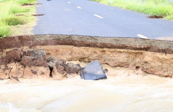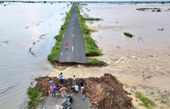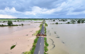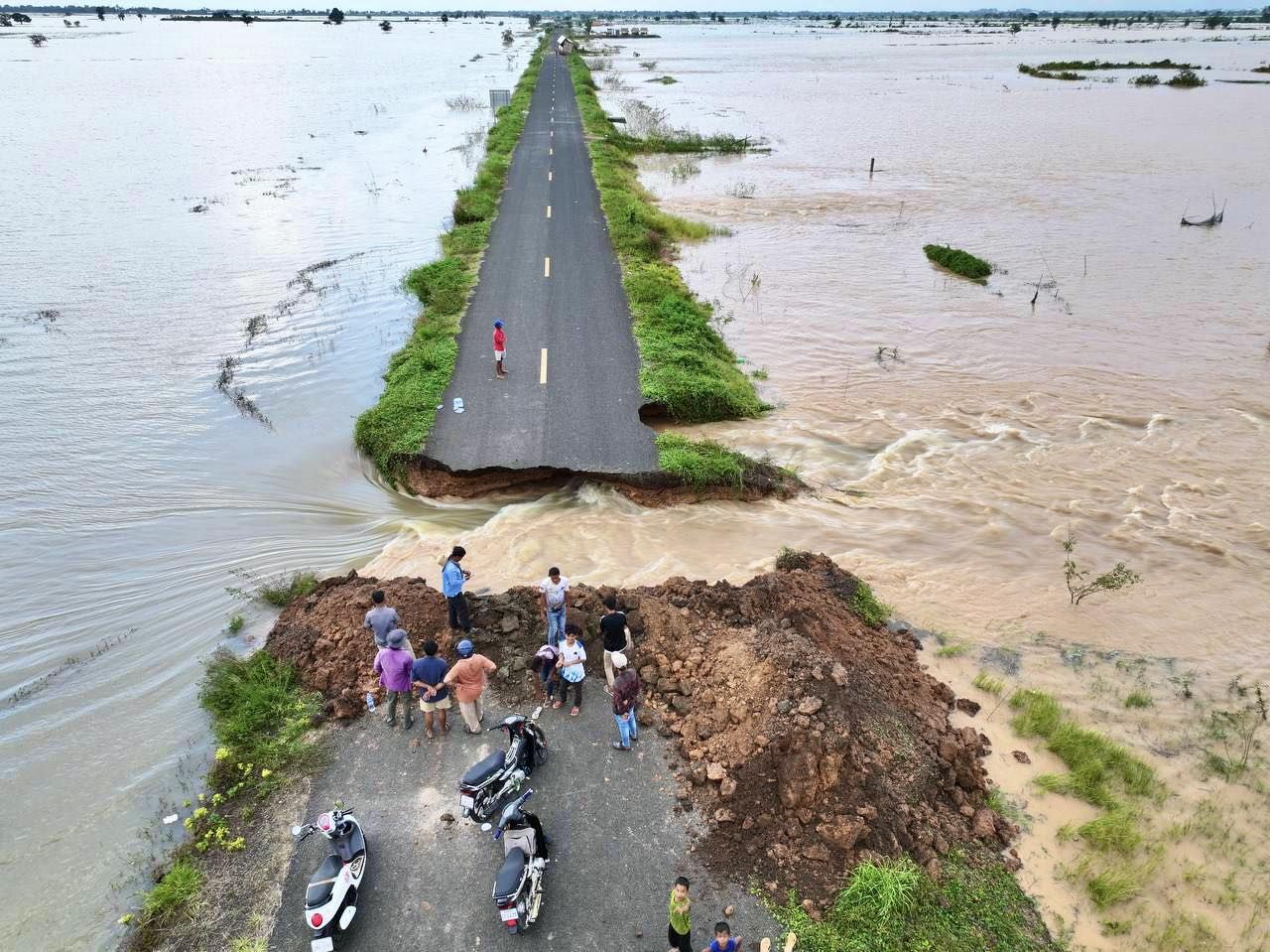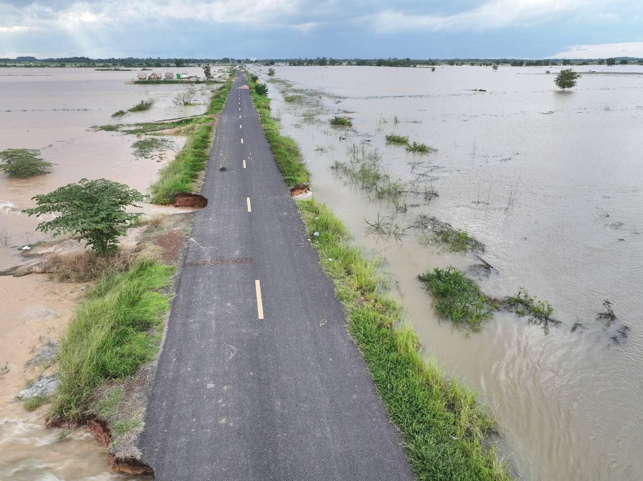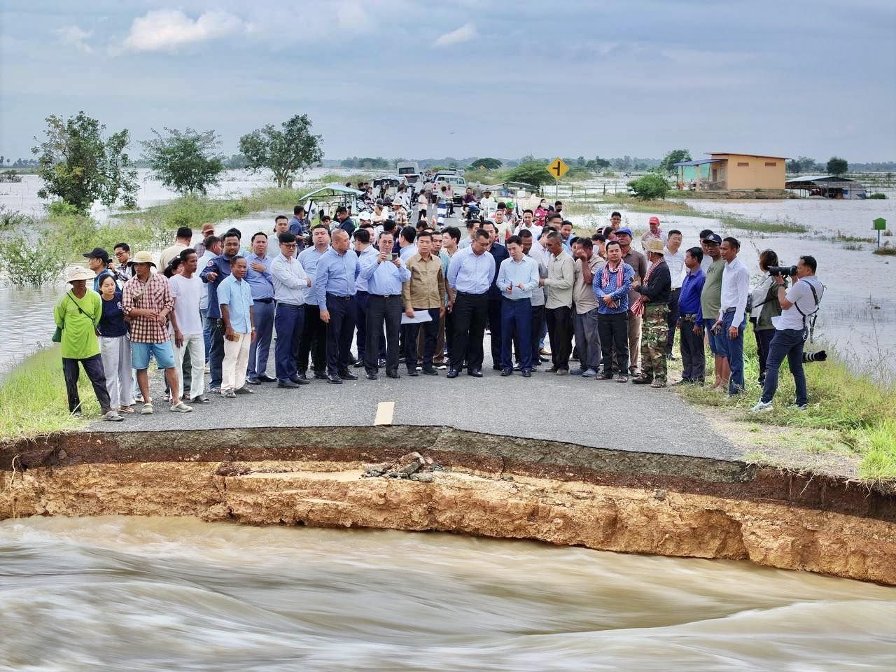 【柬埔寨头条综合报道】据柬媒消息,2025年10月6日下午,柬埔寨公共工程与运输部部长宾波尼亲自率领技术团队,前往波罗勉省别良县,实地考察受洪灾影响的383B号省道路段。 消息指出,该路段因湄公河水位急剧上涨,多处路基被洪水冲毁。波罗勉省公共工程与运输局已于10月6日发布公告,宣布该路段暂时全面禁止通行,直至另行通知。 目前,公共工程与运输部正在评估损失,并表示将采取措施尽快修复该路段,以恢复交通。 (编译:影子) |