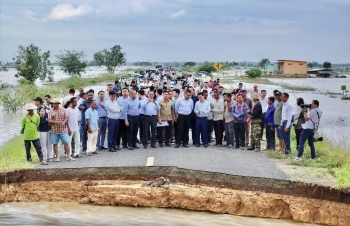 【柬埔寨头条综合报道】据柬媒消息,2025年10月6日下午,柬埔寨公共工程与运输部部长宾波尼亲自率领技术团队,前往波罗勉省别良县,实地考察受洪灾影响的383B号省道路段。消息指出,该路段因湄公河水位急剧上涨,多 ...
