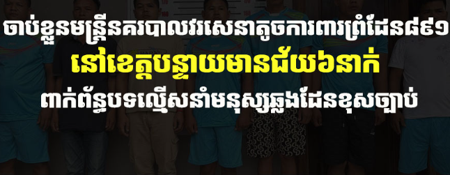 【柬埔寨头条综合报道】据柬媒消息,10月8日晚,在第五军区参谋长森帖楞亲自指挥下,第51支部队联合卜迭棉芷省宪兵开展行动,逮捕了6名涉嫌协助他人非法越境的边防警察。据悉,被捕人员均为边防警察第891支队的警官 ...