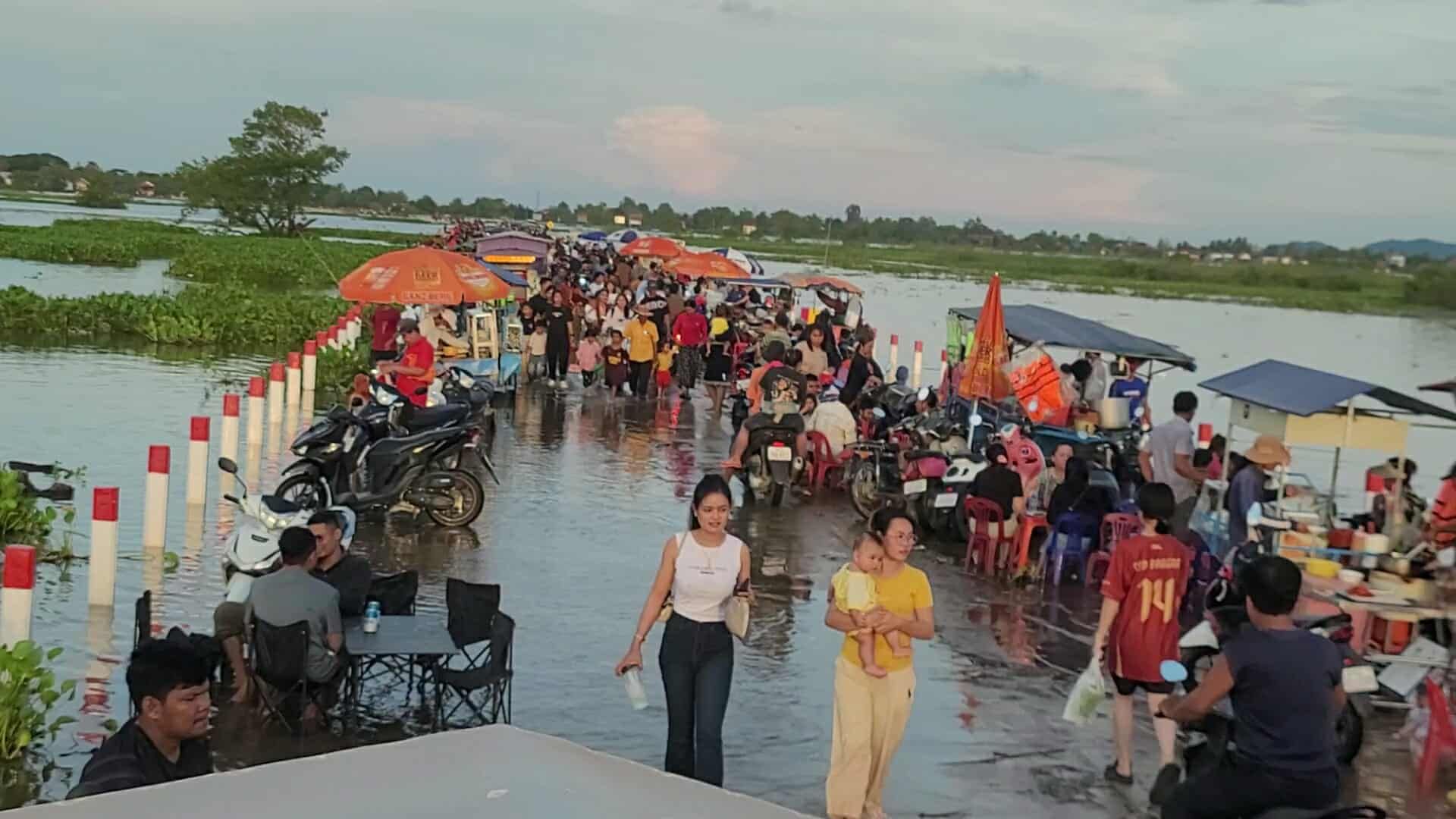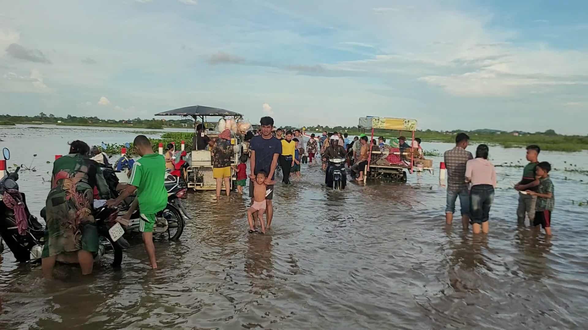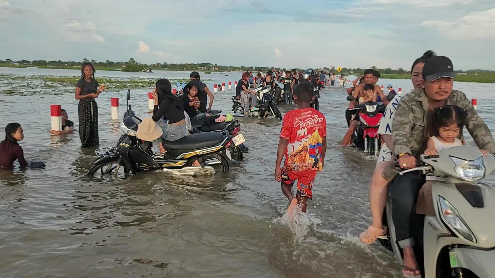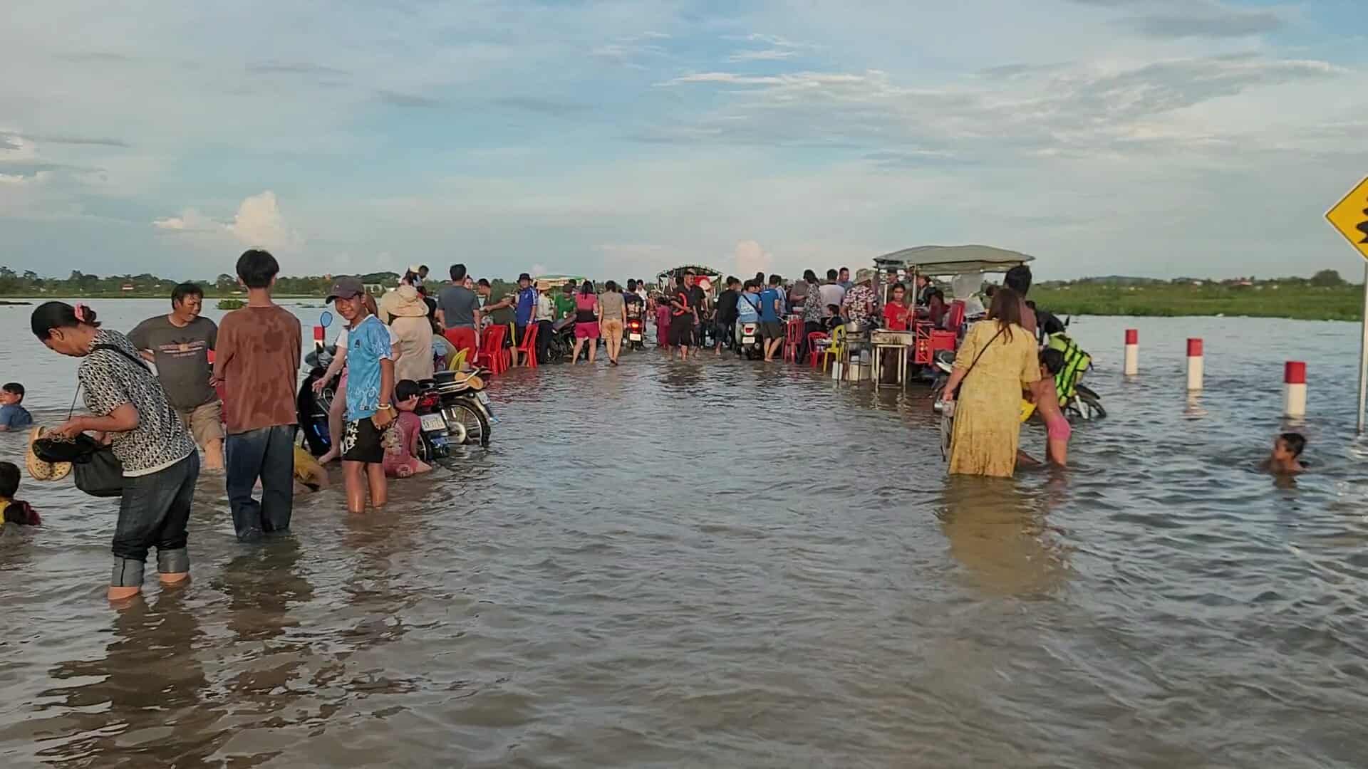 【柬埔寨头条综合报道】据柬媒消息,柬埔寨波罗勉省边罗县Banlich Prasat乡Prek Cham村的一条长近2公里的水泥路,在被洪水淹没后,反而意外成为了当地的热门景点,吸引了数千民众前来游玩。据当地乡政府介绍,这条道 ...
