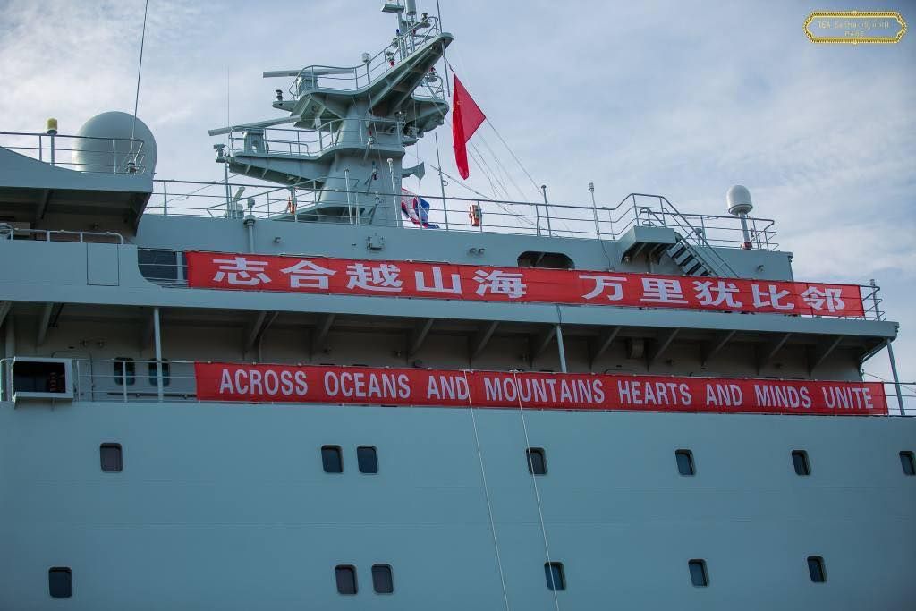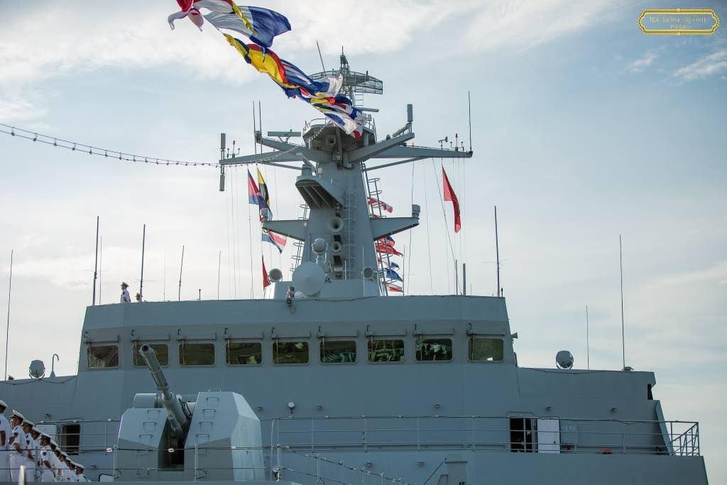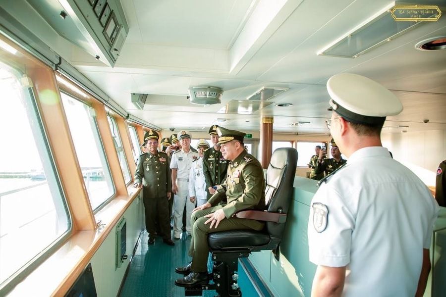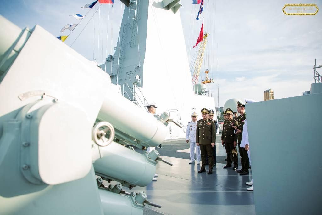 【柬埔寨头条综合报道】据柬媒消息,2025年10月11日,柬埔寨副首相兼国防部长狄西哈前往西哈努克市自治港,参观了正在进行友好访问的中国人民解放军海军军舰戚继光舰(舷号83)和沂蒙山舰(舷号988)。 (编译:影子) |