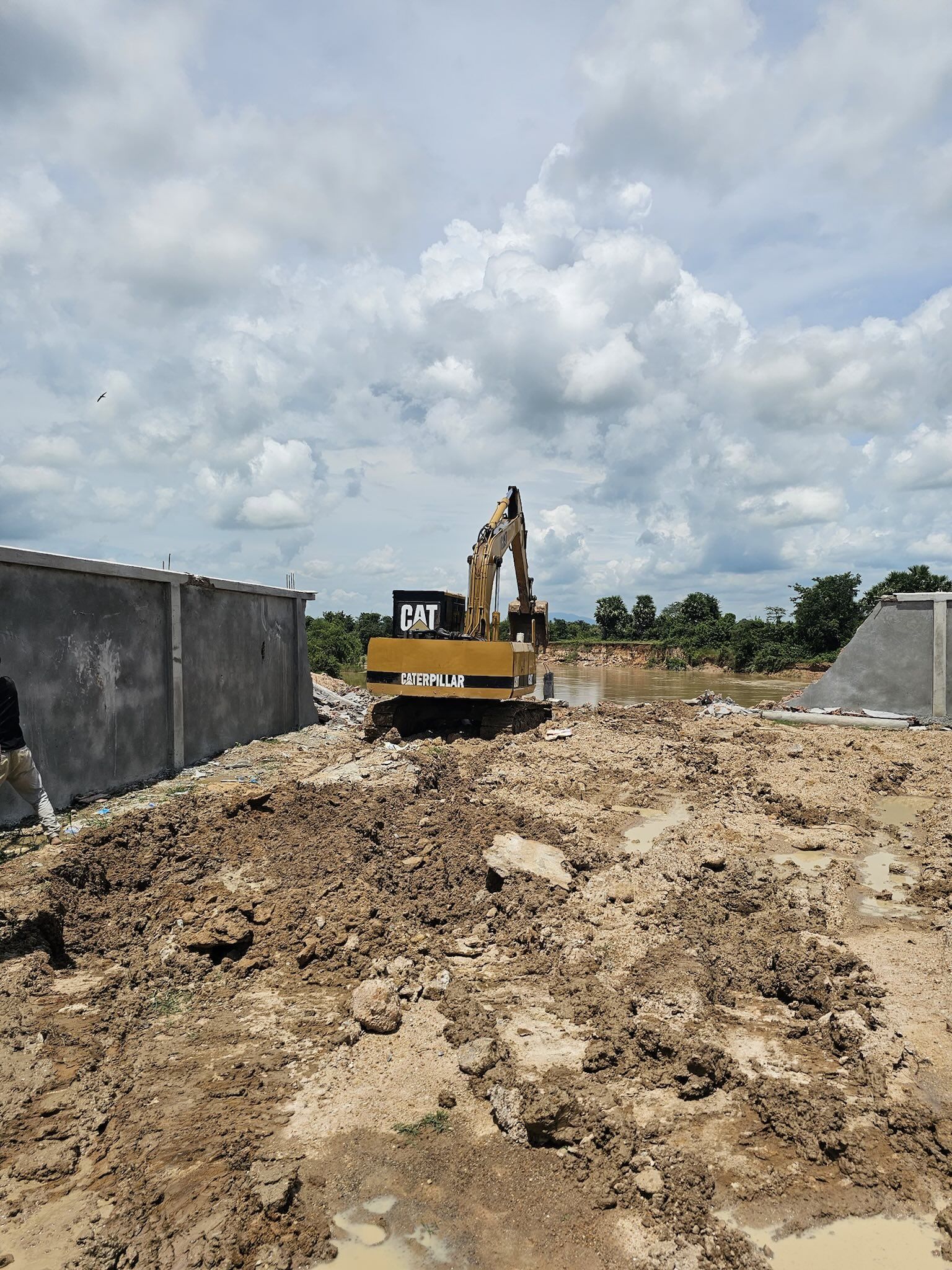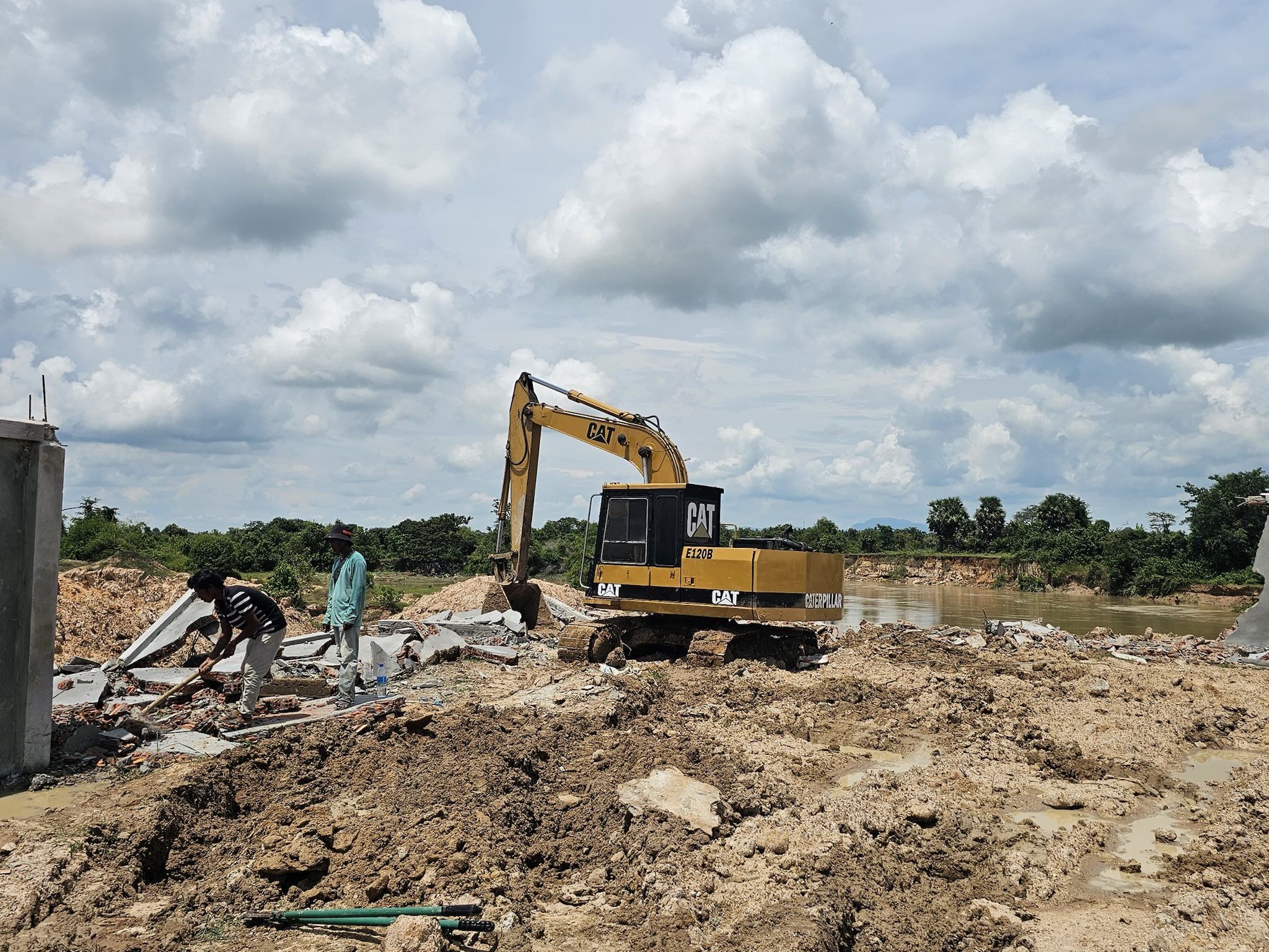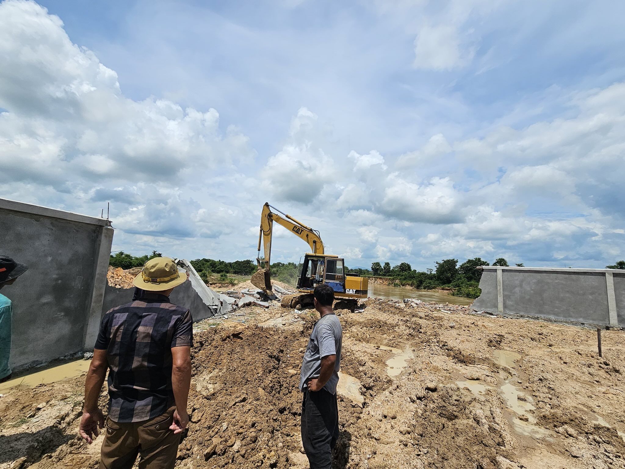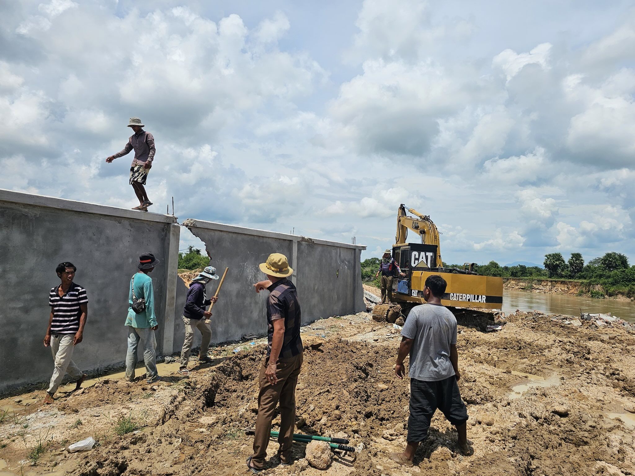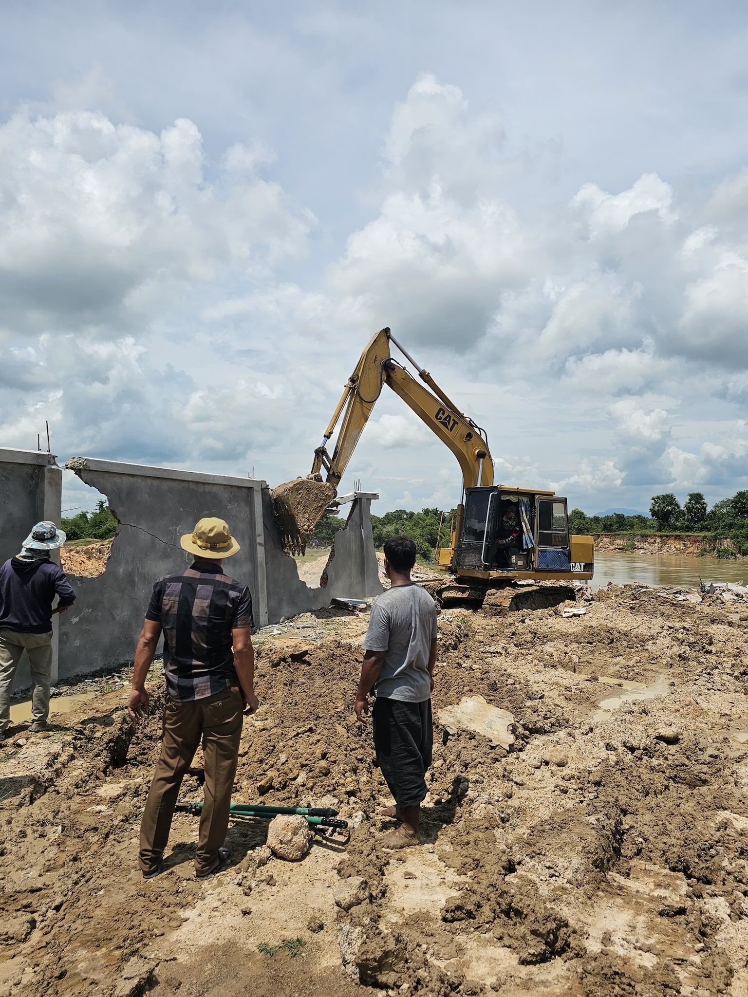 据悉,该石墙位于茶胶省德兰加县Slakou河沿岸。拆除行动已获得建造该墙的公司代表同意。
