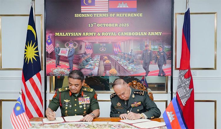 【柬埔寨头条综合报道】据本地媒体报道,柬埔寨王家军陆军司令毛速潘率代表团于10月13日起至16日对马来西亚进行正式访问。 访问期间,毛速潘上将礼节性拜会了马来西亚国防部长,并与马来西亚陆军司令举行双边会谈。代表团还参观了马来西亚陆军第十伞兵旅(特种部队)。 在双边会谈中,两国陆军首长共同签署了《柬埔寨王家军与马来西亚陆军合作条款》。该条款旨在加强和拓展两军之间更紧密、长期且建立在信任基础上的友谊,为地区和平与稳定作出贡献。条款强调通过互访交流、培训项目、联合演习及其他对双方有益的协作倡议开展合作。 双方对柬埔寨与马来西亚两军双边关系的稳步发展表示赞赏,视此里程碑事件为开启军事合作新篇章的起点。《合作条款》的签署为进一步加强和拓展未来数年务实合作活动奠定了重要基础。(编译:Thomas) |