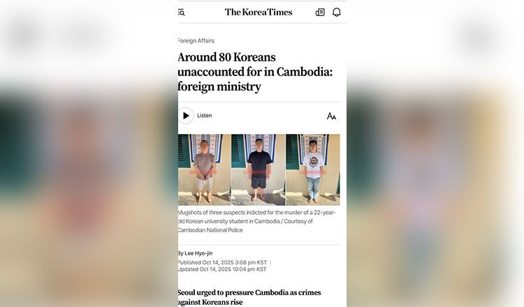 【柬埔寨头条综合报道】柬埔寨国家警察总署于10月16日表示,将于10月17日将59名韩国公民(含4名女性)遣返回国。 柬埔寨警方在通告称:"这些人员因涉及各类犯罪活动已被柬埔寨当局解救或逮捕。 警方补充说明,将与韩国驻柬埔寨大使馆合作完成遣返工作。 针对韩国媒体援引韩国外交部报道称"截至8月约有80名在柬韩国公民处于失联状态",通告回应表示柬埔寨当局始终在持续开展对这些人员的搜寻与调查工作。(编译:Thomas) |