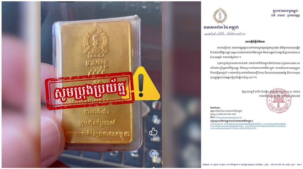 | 【柬埔寨头条综合报道】据柬媒消息,柬埔寨国家银行(NBC)于2025年10月30日发布新闻稿,提醒公众务必提高警惕,警惕近期在脸书等社交媒体上出现的印有柬埔寨国家银行标志(logo)的金片宣传。 柬埔寨国家银行严正申明,该行从未发行过黄金。央行强调:“未经授权使用柬埔寨国家银行的标志和名称是违法行为。” 国家银行同时提醒公众,所有黄金和贵金属产品的买卖均由交易者自行负责,呼吁民众谨慎交易,避免上当受骗。(编译:影子) |