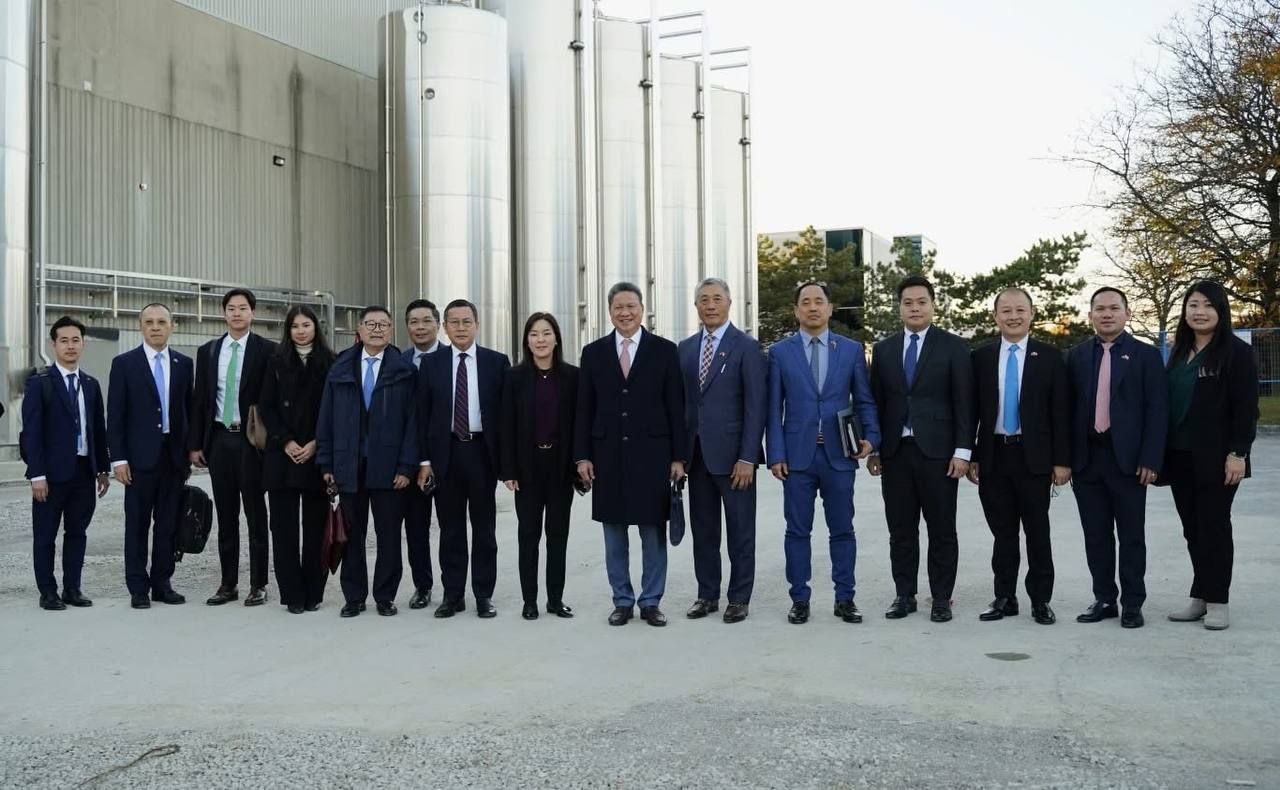 | 【柬埔寨头条综合报道】据柬媒消息,2025年10月29日下午(当地时间),柬埔寨副首相、柬埔寨发展理事会(CDC)第一副主席孙占托率领柬埔寨代表团,访问了位于加拿大安大略省多伦多市的 Lee Li Holdings Group 旗下果汁生产企业。 随行代表团成员包括:柬埔寨商务部、工业科学技术与创新部、柬埔寨勋爵协会,以及柬埔寨驻安大略省名誉领事馆代表。 此次访问的主要任务是深入了解该企业采用先进技术和高度自动化的运营管理模式及大规模生产线。柬埔寨代表团借此机会了解了该公司在饮料加工中使用的现代技术和国际质量标准,这些经验可作为提升柬埔寨食品加工和农工业的榜样。 据悉,Lee Li Holdings Group 目前正在寻求在柬埔寨投资的可能性,以便供应区域市场。 值得一提的是,Lee Li Holdings Group董事长兼首席执行官 Lee Q. Shim曾于2024年7月拜会柬埔寨首相洪玛奈亲王。在当时的会晤中,Lee Li Holdings Group 表示有兴趣在柬埔寨的关键潜力领域进行投资,包括石油和天然气、医疗服务、出口认证中心、食品加工业、物流业和汽车行业。(编译:影子) |