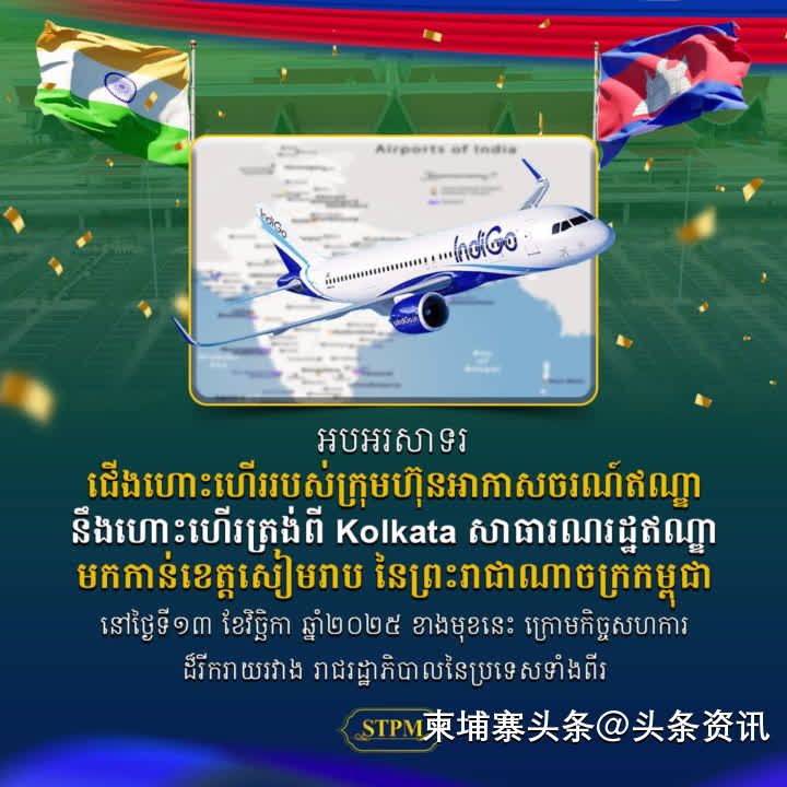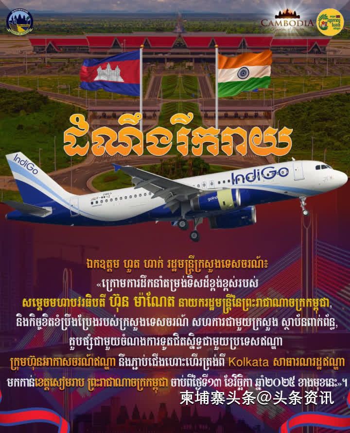 【柬埔寨头条综合报道】据柬媒11月12日报道,在柬埔寨旅游部及相关机构的共同推动下,印度航空将于2025年11月13日正式开通印度加尔各答直飞暹粒的航线。柬埔寨旅游部长胡海表示,这一航线的开通得益于首相洪玛奈的英 ...