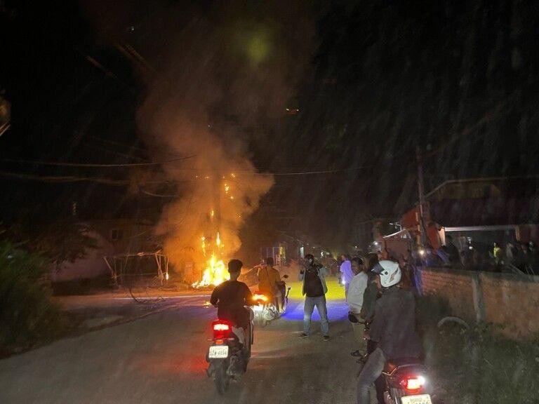 【柬埔寨头条综合报道】据本地媒体报道,11月13日晚20时,金边隆边区白梳分区一电线杆突发大火。 据附近居民透露,事发前,当地居民听闻爆炸声响,立即赶赴现场查看,发现一电线杆失火。民众立即拿灭火器前去灭火,因火势过大无法扑灭,接着大家报警处理。 消防局接警后,出动一辆消防车前往案发现场灭火,于同日晚20时30分把大火扑灭。 消防局指出,此次大火烧毁了部分电线,所幸没有造成任何人受伤,也没有蔓延至民宅。(编译:Thomas) |