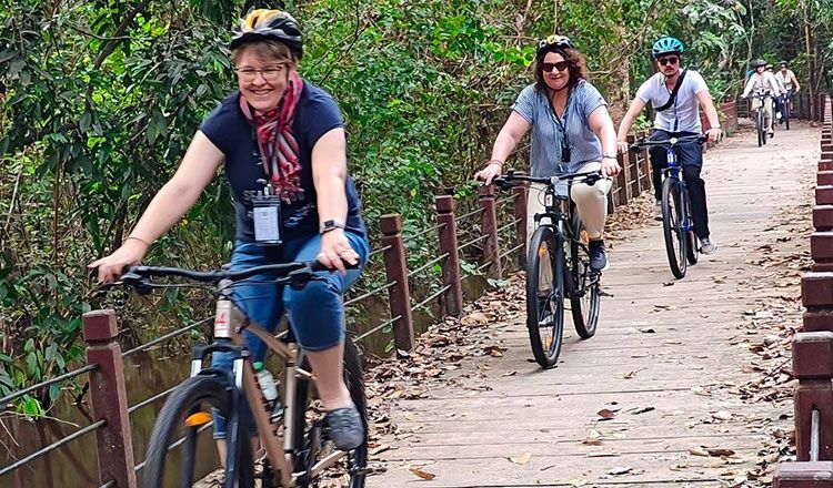 【柬埔寨头条综合报道】吴哥仙女机构近日发布消息称,自新冠疫情形势缓解以来,选择骑自行车探索吴哥窟旅游景点的游客数量稳步增加。 该局旅游发展与文化部主任表示,沿着一条23公里长的路线,平均每天有100多名自行车游客参观吴哥窟。 他说:"许多游客对穿过吴哥景区内森林和稻田的自行车道表示满意。" 他说,除了暴雨时期,骑自行车参观的游客数量逐月持续上升。他说,该局于2019年在吴哥景区内修建了这条自行车道。这条路线穿过森林、溪流、稻田和寺庙附近区域,对于喜欢骑自行车而不是开车的游客来说,这是一个有吸引力的选择。 他补充说,尽管这条路线得到了许多游客的大力支持,但应自行车爱好者的要求,该局打算进一步完善这条路线。 据该局称,今年前10个月,吴哥窟旅游景点共吸引了765518名国际游客,门票总收入达3550万美元。(编译:Thomas) |