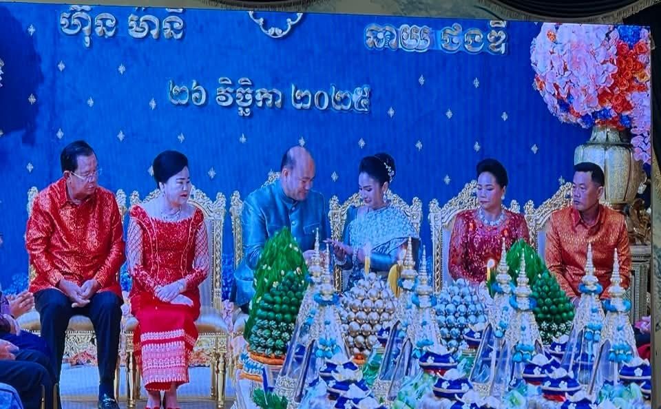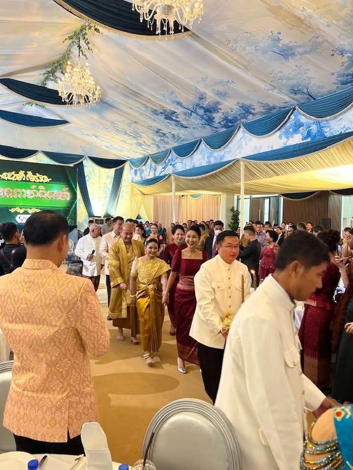 【柬埔寨头条综合报道】据柬埔寨前新闻部长乔干那烈在其官方脸书发布的消息,11月26日上午,洪森亲王幼子、现任副首相兼公共事务部长洪玛尼在金边举行婚礼。现场布置典雅庄重、气氛热烈,处处彰显仪式的隆重与格调, ...