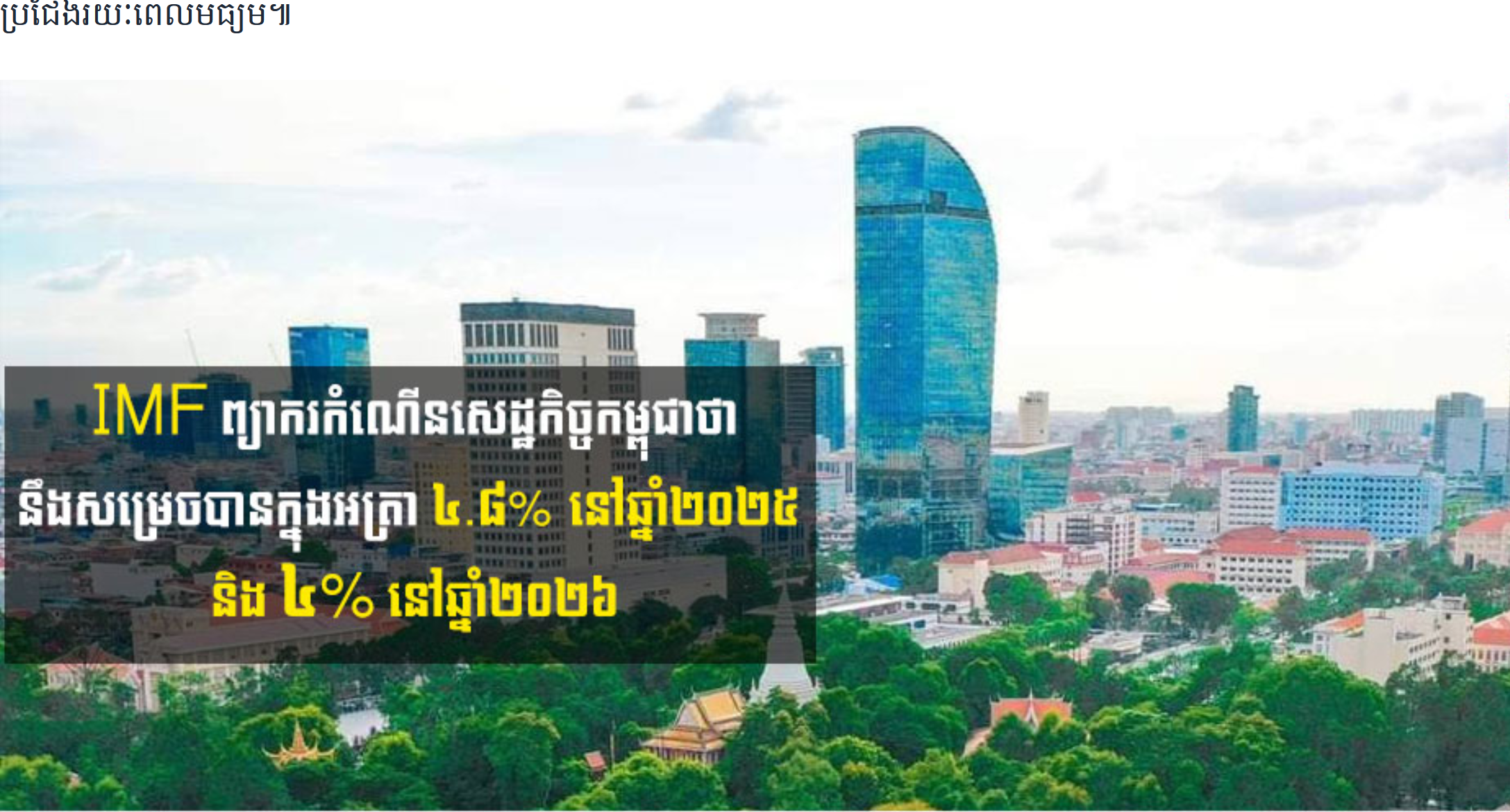 【柬埔寨头条综合报道】据柬媒消息,国际货币基金组织(IMF)于2025年11月25日发布公告,将柬埔寨2025年的经济增长预测下调至 4.8%,并将2026年的预测进一步下调至约 4.0%。IMF指出,柬埔寨经济在2024年实现了6.0%的 ...