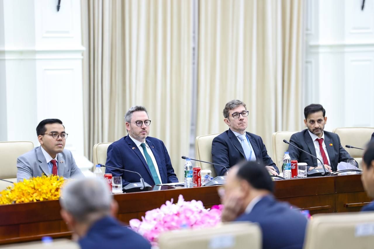 【柬埔寨头条综合报道】据柬媒消息,2025年12月2日上午,柬埔寨首相洪玛奈亲王在和平大厦接见了美国-东盟商业委员会(US-ABC)主席兼首席执行官特德·奥修斯(Ted Osius)及其率领的代表团,双方进行了礼节性拜会及工作会谈。 特德·奥修斯对洪玛奈首相接见表示感谢,并高度评价柬埔寨政府及各部委一直以来给予US-ABC的支持与密切合作。他特别指出,柬埔寨各部委以真诚和开放的态度,致力于解决在柬投资企业面临的问题,并强调政府-私营部门论坛(G-PSF)是对私营部门至关重要的平台。 多家美国投资公司的代表团成员随后向首相汇报了各自在柬埔寨的业务进展情况,并对柬埔寨一直以来支持其业务运营取得成功表示感谢。 同时,代表团表达了扩大投资及在多个潜力领域寻找新投资机会的意愿。这些领域包括:卫生、旅游与酒店服务、数字技术、银行与金融、基础设施、智慧城市、汽车及保险等。代表团强调,将与柬埔寨政府建立紧密合作伙伴关系,为实现政府的“五角战略”做出贡献。 洪玛奈首相对此次商务考察表示热烈欢迎,并对信任和投资柬埔寨的美国商界人士表示赞赏。他指出,美企的行动为加强柬美双边关系及推动柬埔寨商业领域发展做出了重要贡献。 首相还重点介绍了旨在鼓励和支持投资者取得成功的关键政策、战略和机制,并强调将继续通过G-PSF解决私营部门面临的挑战和诉求。首相鼓励所有投资公司继续与柬埔寨各部委机构保持更密切的合作,并继续在柬埔寨追加投资。 (编译:影子) |
