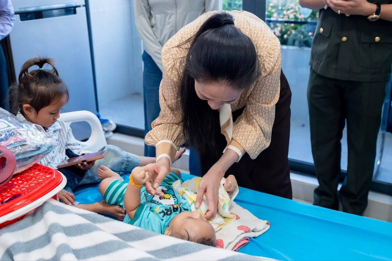 第一夫人向军民表达了鼓励与祝福,祝愿他们身体强健,并嘱咐他们安心养病,争取早日康复。她同时向每一位正在住院治疗的军人和民众分发了食品、日用品以及慰问金。