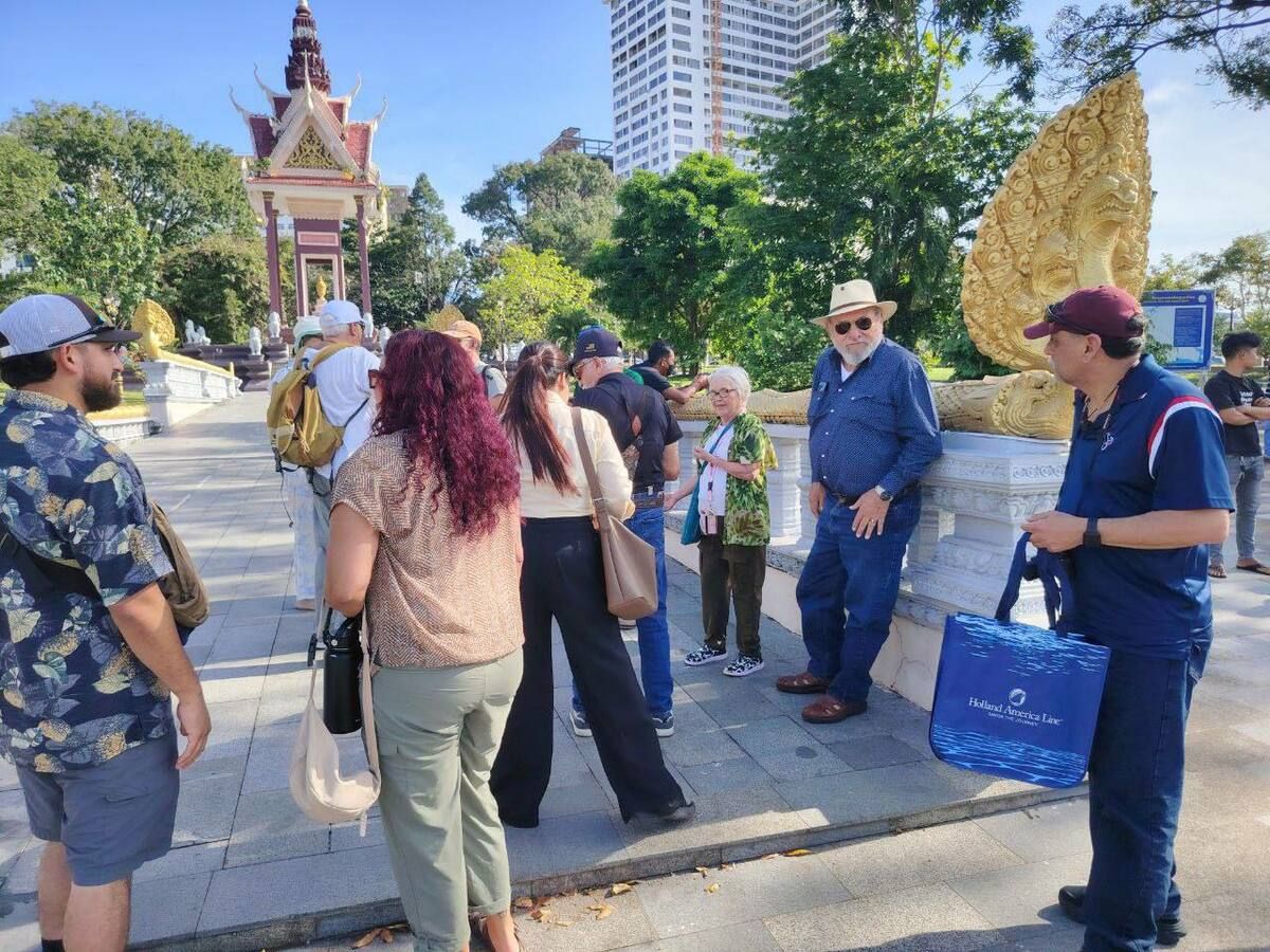 【柬埔寨头条综合报道】据柬埔寨新闻部消息,一艘名为“威士特丹号”(WESTERDAM)的荷兰大型邮轮于2025年12月15日上午6时停靠西港。该邮轮共载有1877名乘客,其中大部分来自美国,且以女性游客居多。 报道指出,尽管当前柬埔寨与泰国局势紧张,仍有国际游客按计划抵达柬埔寨,显示国际邮轮航线和旅游活动仍在持续运行。大部分游客下船后前往“7玛卡拉论坛”,向柬埔寨士兵及流离失所人员捐赠善款和食品,以表达关怀与支持。 另据介绍,“威士特丹号”邮轮还搭载800名船员,计划于当晚20时离开西港,继续航程前往泰国。 |