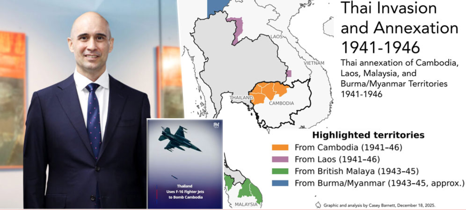 【柬埔寨头条综合报道】据柬媒消息,柬埔寨美国商会(AmCham)主席凯西·巴尼特(Casey Barnett)近日发表评论指出,泰国在2025年指责柬埔寨士兵越境开火,完全是为了掩盖其侵略意图而重用的“老旧借口”,这一手段与1941年泰国侵略柬埔寨时如出一辙。 巴尼特先生指出,泰国的军事目标始终是寻求领土扩张。他回顾了二战时期的关键历史节点: •1940年6月: 泰国无视日军在中国制造的暴行,坚持与日本签署条约,为日本占领法属印度支那和英属马来亚奠定基础。 •1941年1月: 泰国声称驻柬法军向其亚兰市开火,并以此为由侵略柬埔寨和老挝。巴尼特强调,事实上泰国为此已秘密筹备数月,并迅速强行吞并了柬埔寨北部多个省份及老挝西部领土。 •1941年12月: 泰日进一步结盟,泰国成为日军进攻马来亚和缅甸的战略基地。 1943年7月,作为与日本合作的回报,日本将马来亚和缅甸的六个省份转交给泰国。巴尼特提到,在此期间,泰国受益于日军强迫劳工修建的“泰缅铁路”(又称死亡铁路)。该铁路建设强迫约 30,131名英国战俘和686名美国战俘。共有6,904名英国人和131名美国人因残酷的劳动环境丧生。 巴尼特指出,二战结束后,由于美国出于地区稳定的政治考量,反对英国对泰国的严厉惩罚,导致泰国最终仅退还了吞并领土,并未为其侵略行为承担实质性责任。(编译:影子) |