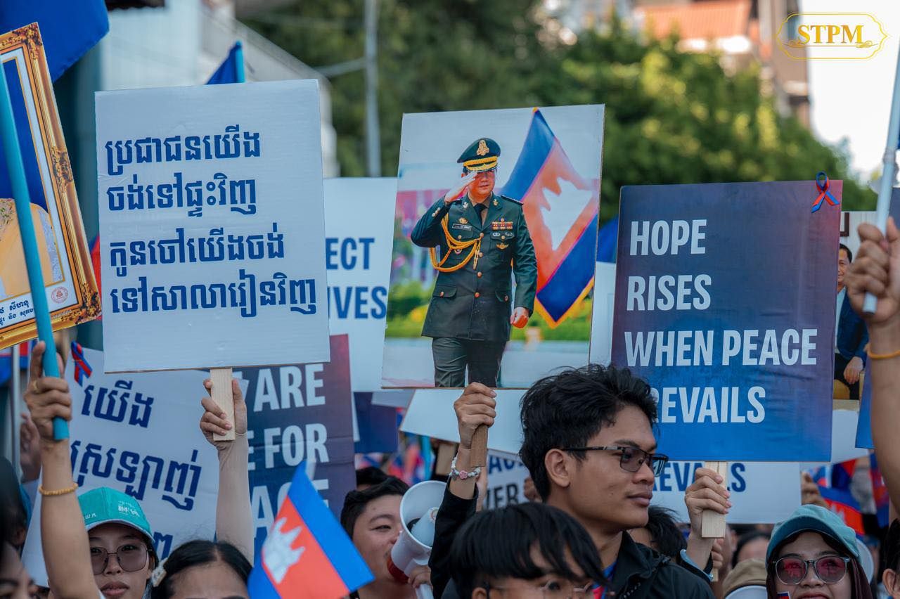【柬埔寨头条综合报道】据柬媒消息,2025年12月18日晚,柬埔寨首相洪玛奈通过其官方脸书发文表示,柬埔寨是团结一心的大家庭,柬埔寨需要和平。他表示:“我们怀着最纯洁的心灵和最真诚的意愿,向全世界传递这一讯息。” 洪玛奈指出,来自不同背景、政治立场和宗教信仰的柬埔寨人民紧密团结。大量国民自发参与名为“和平游行”的大型活动,游行队伍从金边夜市出发,一路行进至独立纪念碑,现场充满希望、信心和民族团结的精神。 他进一步强调,柬埔寨人民无比珍视和平,并渴望与世界各国友好共处。他向国际社会发出深情呼吁,称在任何情况下,柬埔寨都不愿再看到战争带来的破坏、灾难或生命的消逝。 洪玛奈首相最后表示,民众的踊跃参与是对政府维护国家安全与和平努力的巨大鼓舞。同时,他向柬埔寨青年联合会(UYFC)组织此次具有深远意义的活动表达感谢,认为这为同胞们提供了共同表达和平愿景的机会。 (编译:影子) |