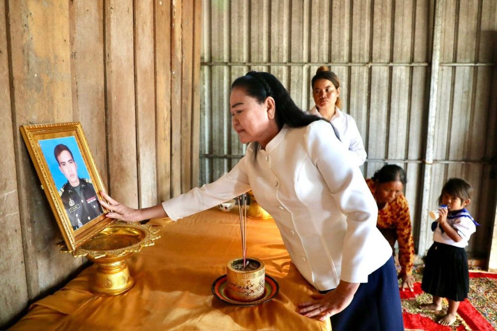 【柬埔寨头条综合报道】据本地媒体报道,柬埔寨红十字会主席文拉妮亲王12月28日上午前往慰问在执勤中牺牲的高级军官家属,向其致以沉痛哀悼并为他们提供资金援助。 文拉妮亲王一行赴菩萨省,在柬埔寨红十字会官员的陪同下,向一名中校的家人会面,对这名中校执勤期间殉职表示哀悼。 红十字会在一份声明中表示:"国家将永远铭记和颂扬那些在执勤中牺牲的人的勇气和奉献精神。" 据官方描述,Chan Sovatha是一名勇敢的军官,他为捍卫柬埔寨的领土完整和国家主权而牺牲。根据当地传统,红十字会代表团向他的家人提供了食物和资金援助,以帮助支付丧葬费用并解决眼前困难。(编译:Thomas) |
