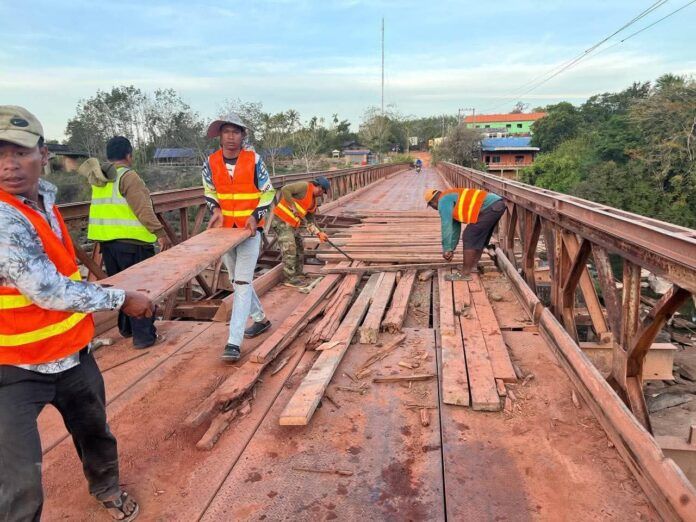 【柬埔寨头条综合报道】据柬埔寨媒体12月30日报道,菩萨省政府宣布,位于特莫达乡、横跨梅特河的巴烈-胜利桥(旧铁桥)已于12月29日顺利完成维修工作,并于12月30日起正式恢复通车。 据悉,该桥梁于12月13日清晨6时许遭泰国军队投掷一枚炸弹破坏,导致桥体受损、交通中断。事件发生后,柬埔寨公共工程与运输部迅速作出部署,组织专业维修工作组在确保安全的前提下展开抢修作业,以尽快恢复通行条件,方便民众出行。 此次桥梁修复完成并重新开放通行,有效缓解了当地交通压力,也保障了周边地区人员和物资往来的顺畅。 |