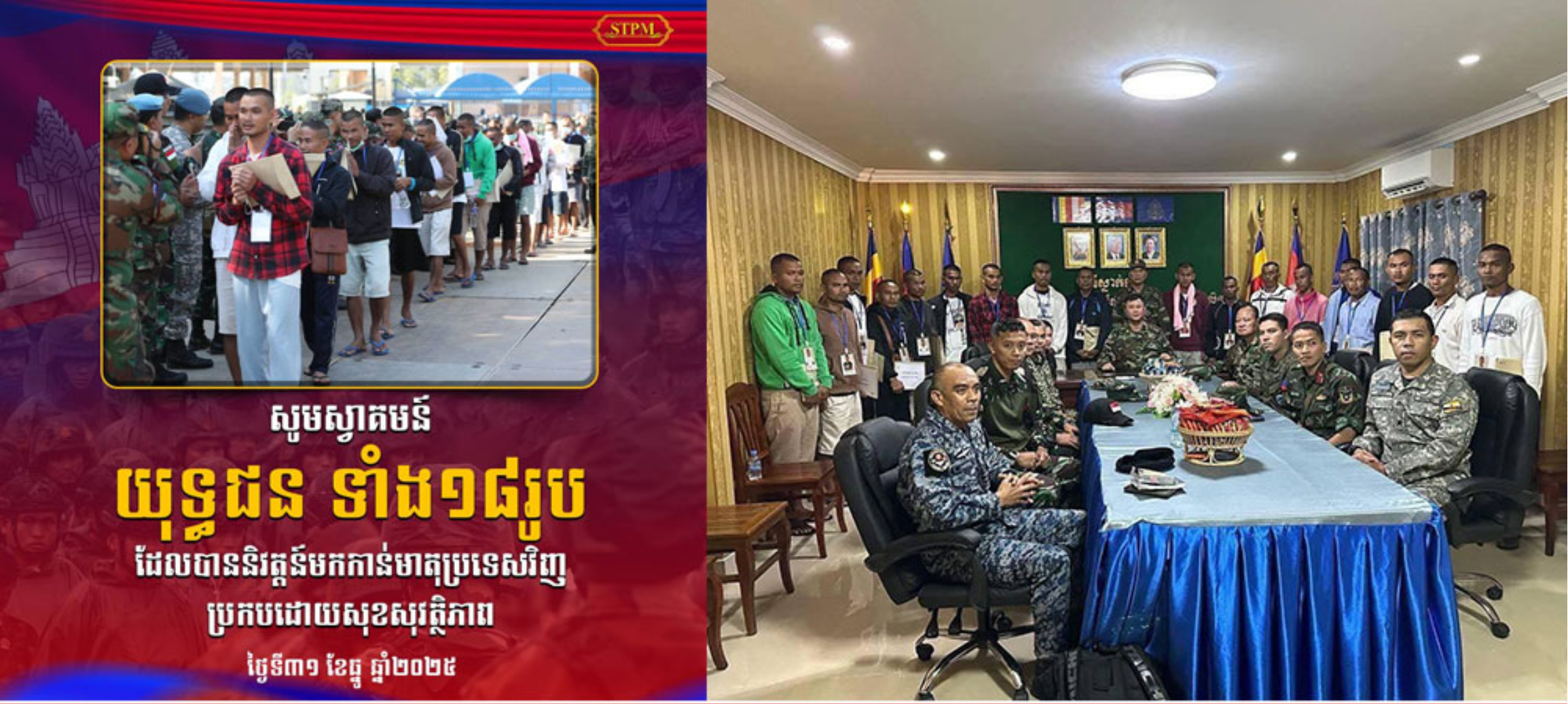 柬埔寨参议院主席洪森亲王与首相洪玛奈亲王分别通过社交媒体发布信息,对战士们的回归表示热烈欢迎。 |