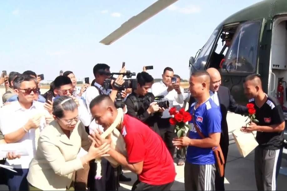 【柬埔寨头条综合报道】据柬媒消息,2025年12月31日下午,在被泰方扣押长达155天后获得释放的18名柬埔寨士兵,已搭乘军用直升机平安抵达首都金边波成东机场(旧机场)。现场气氛庄重而感人,当士兵们走下直升机时, ...