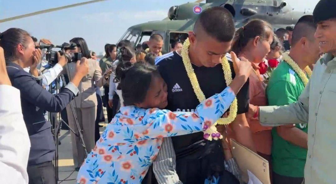 | 【柬埔寨头条综合报道】据柬媒消息,2025年12月31日下午,在被泰方扣押长达155天后获得释放的18名柬埔寨士兵,已搭乘军用直升机平安抵达首都金边波成东机场(旧机场)。现场气氛庄重而感人,当士兵们走下直升机时,守候已久的家属们纷纷热泪盈眶,上前与阔别多日的亲人紧紧相拥。 现场还有柬埔寨副首相兼公共事务部部长洪玛尼、柬埔寨国王最高顾问棉森婉亲王、金边市市长坤盛以及国家警察总署副总监兼金边市警察局局长尊那林等人。 此次士兵的成功归国,标志着在《吉隆坡协议》及近期停火框架下的重要人道主义成果。在2026年元旦钟声敲响前,这些英勇的战士终于得以回到家乡,与家人共度佳节。 (编译:影子) |