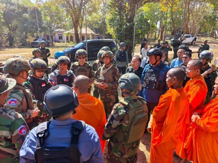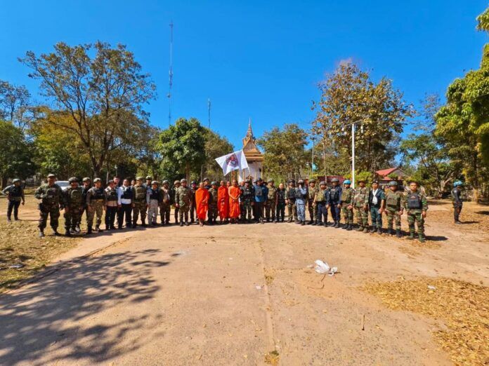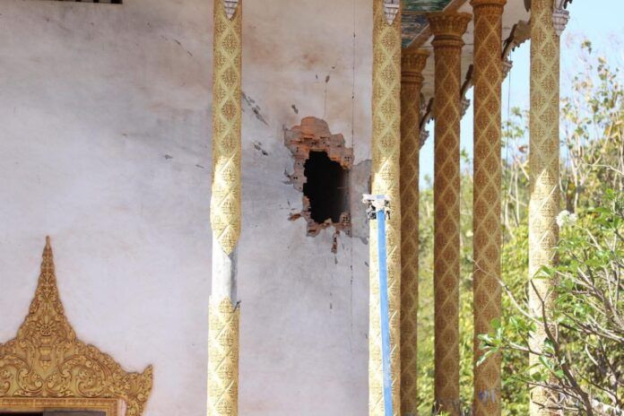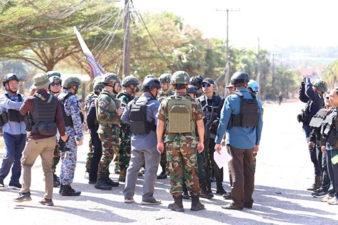 【柬埔寨头条综合报道】据柬埔寨媒体报道,2026年1月8日上午,柬埔寨奥多棉芷省省长棉章亚达率领省级工作组及AOT小组,前往奥斯马国际口岸,实地检查泰国军方炮击并设置铁丝网对当地造成的负面影响。 报道称,此次检查是在泰国军方严重侵犯柬埔寨领土、动用重型武器和炮弹实施袭击之后进行的。相关袭击事件已对当地基础设施、居民住房及私人财产造成广泛破坏。 棉章亚达省长一行重点查看了奥斯马国际口岸及周边区域受损情况,并评估炮击及铁丝网设置对边境通行、安全秩序和民生造成的影响。 |