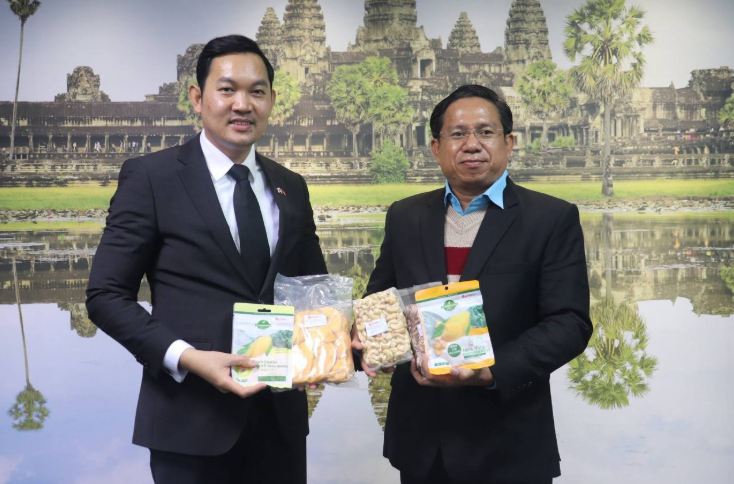 【柬埔寨头条综合报道】据柬媒消息,1月9日,柬埔寨驻韩国大使坤蓬拉塔纳会见了柬埔寨国家“一村一品”民族运动推进委员会秘书处秘书长帕苏杰,以及DCON公司、BARAY GLOBAL MANAGEMENT公司和BARIMEX公司代表,就相关合作事宜进行深入交流。 会谈中,坤蓬拉塔纳大使表示,柬埔寨驻韩国使馆愿与“一村一品”民族运动推进委员会加强合作,积极推动柬埔寨产品进入韩国市场。他强调,希望在不久的将来,越来越多的柬埔寨产品能够成功亮相韩国市场,进一步拓展两国经贸合作空间。 |