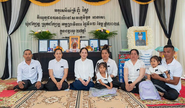 【柬埔寨头条综合报道】据本地媒体报道,1月16日,柬埔寨第一夫人碧占莫妮前往特本克蒙省、桔井省和上丁省,向因公殉职的士兵及警员家中进行吊唁。 在此悲痛时刻,碧占莫代表洪森亲王、文拉妮人以及洪玛奈首相致以深切哀悼与慰问,向英雄家属表达抚慰与关怀。 碧占莫妮同时转交了洪玛奈首相赠予家属的慰问金及物资,以缓解他们失去亲人后日常生活面临的困难。 柬埔寨政府与全体柬埔寨人民始终铭记并崇敬那些为捍卫国家主权、领土完整及维护和平而献出生命的烈士和警员的勇气与牺牲。 洪玛奈首相近期推出一系列支持烈士家属的政策与机制,包括生活补助、家庭成员社会福利、子女直至完成大学学业的奖学金支持、债务重组、伤残老兵债务解决方案,并设立专项基金以保障烈士家庭生计。 除对烈士家属的帮扶外,政府还积极协助流离失所民众重返家园,修复受损基础设施,清除未爆弹药及遗弃武器,恢复民生保障,确保受影响社区的稳定与安全。(编译:Thomas) |