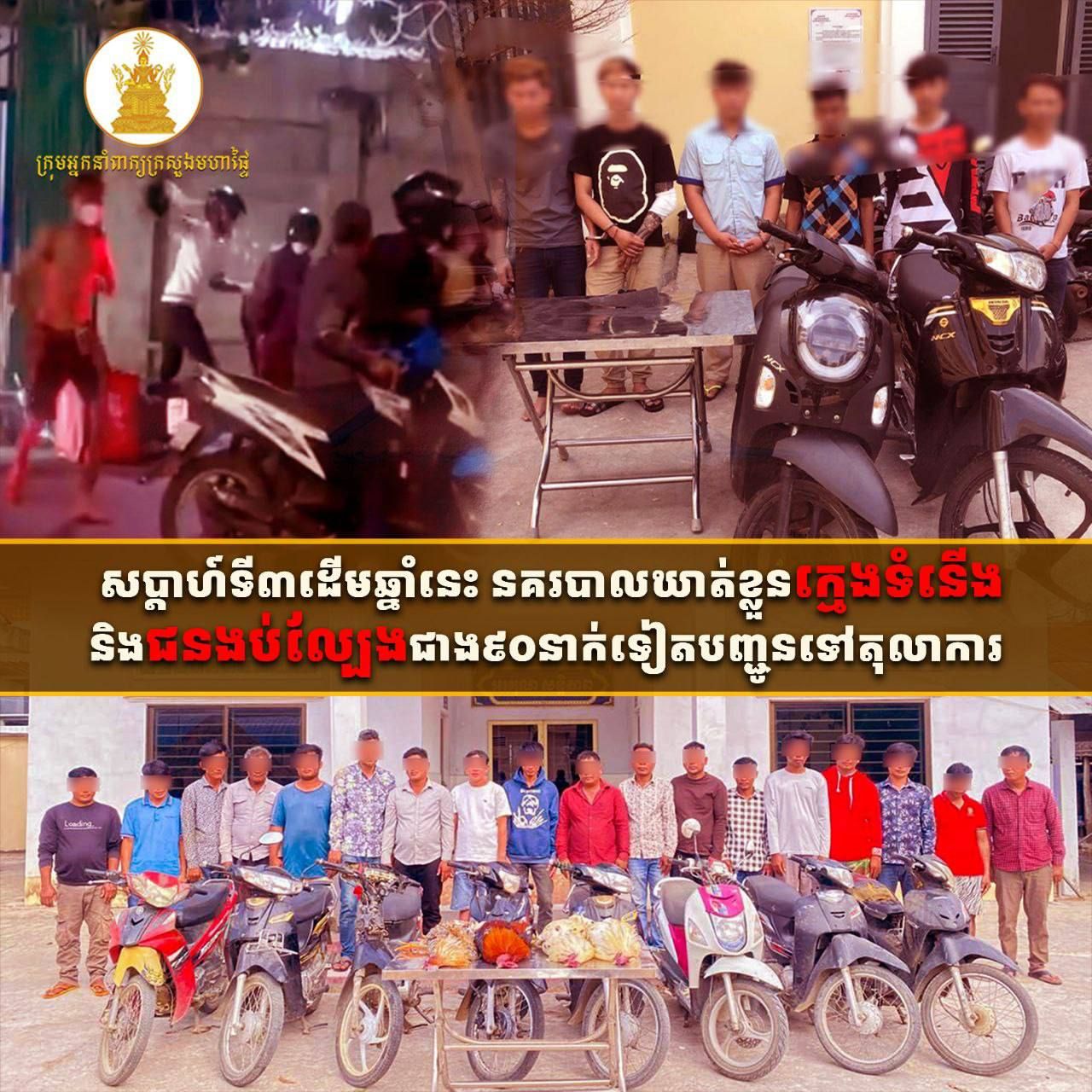 【柬埔寨头条综合报道】据柬媒消息,从1月15日至21日短短一周内,柬埔寨警方持续加大执法力度,共侦破21起不良青年违法案件,抓获嫌疑人70人;同时查处6起非法赌博案件,逮捕23名赌徒,涉案人员均已依法处理。内政部 ...