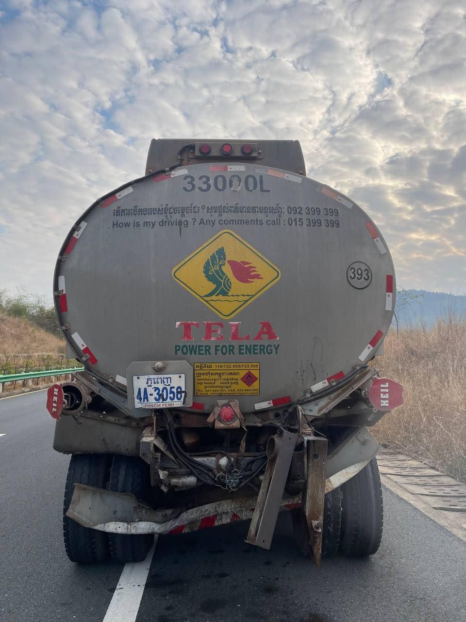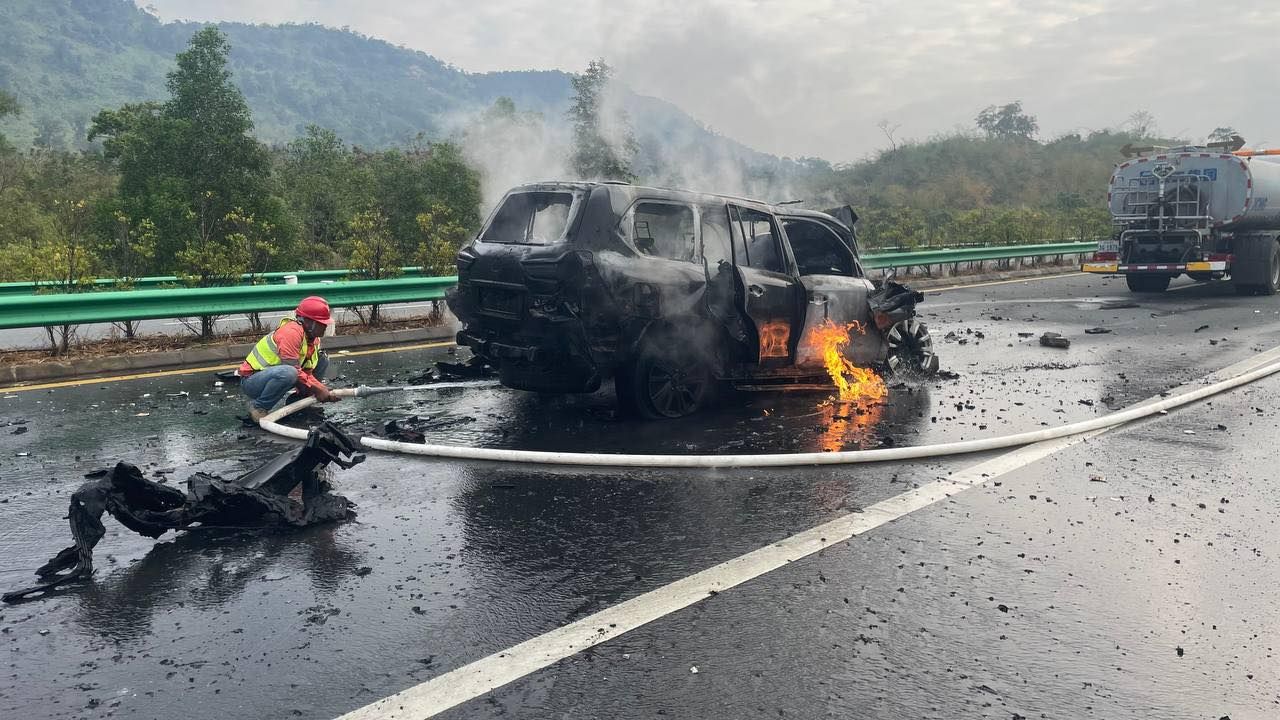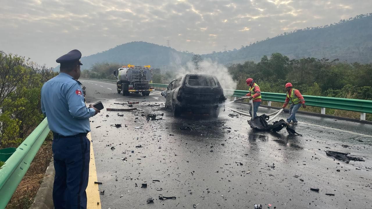 【柬埔寨头条综合报道】据柬媒消息,2026年1月28日上午约7时30分,金港高速公路)实居省普农斯罗县路段发生一起惨烈交通事故。在高速公路PK 93+400处,一辆黑色雷克萨斯轿车撞上前方同向行驶的油罐车尾部。 据普农斯罗县警察局局长Chun Chandet引述高速公路工作组的消息称,事发时,该雷克萨斯正由西港往金边方向行驶。追尾事故发生后,雷克萨斯轿车瞬间起火并猛烈燃烧,导致司机因受困车内不幸当场身亡,目前死者身份尚未确认。 此次事故造成雷克萨斯车被完全烧毁,载有燃油的油罐车尾部受损。事故发生后,油罐车司机弃车逃离现场。金港高速公路公司在接警后迅速出动救援队并调用水车进行灭火,最终控制住火势。 目前,实居省警方已完成现场取证,并将两辆涉事车辆移离高速公路存放,以便进一步调查处理。 (编译:影子) |