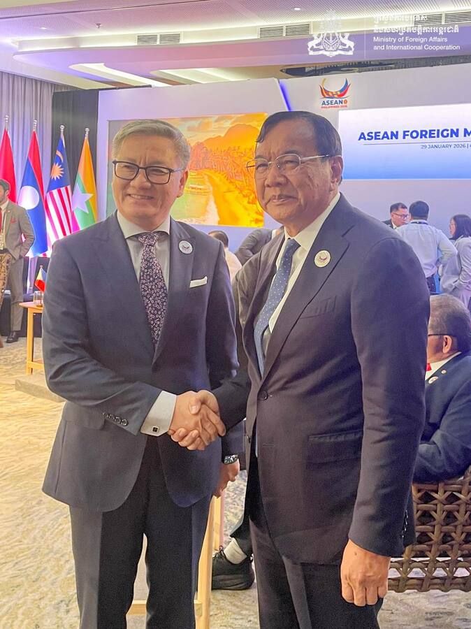 【柬埔寨头条综合报道】据柬埔寨新闻部消息,1月29日,柬埔寨外交部长与老挝外交部长在宿务举行会晤,就加强双边关系以及双方共同关心的地区和国际问题深入交换意见。 在此次非正式会晤中,两国外长对柬老两国长期以来建立的深厚友谊表示高度肯定。双方一致强调,2026年是两国建交70周年,具有重要里程碑意义,并表示将保持密切合作,共同筹办一系列富有纪念意义的庆祝活动,以纪念这一历史性时刻。 此外,双方还就地区与国际形势等议题进行了深入交流,并重申将持续加强沟通与协作,推动柬老双边合作不断深化。 |