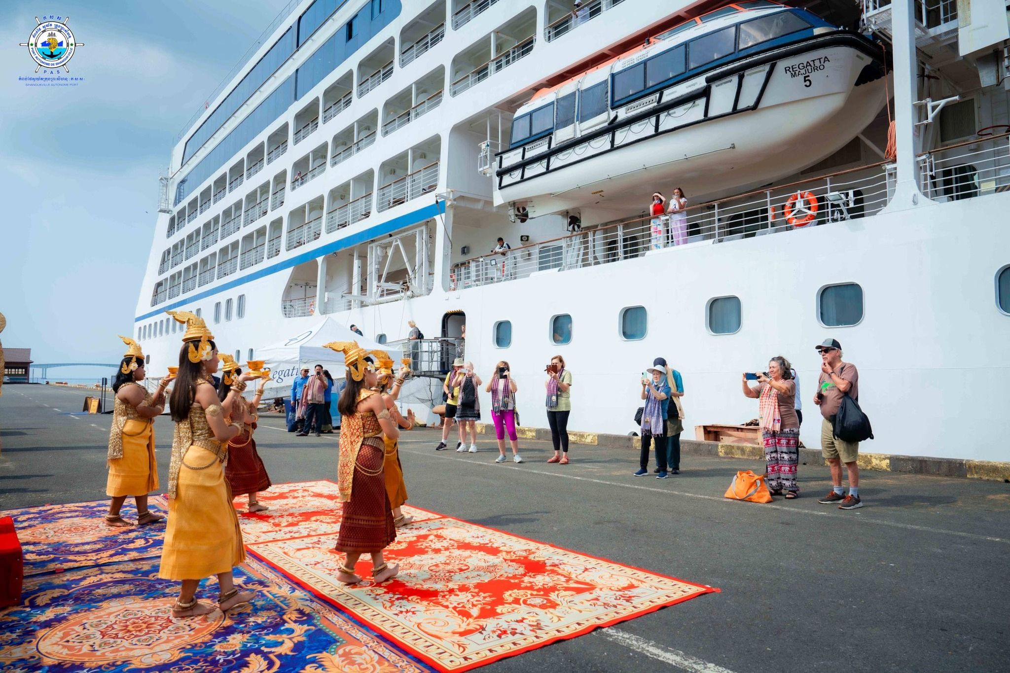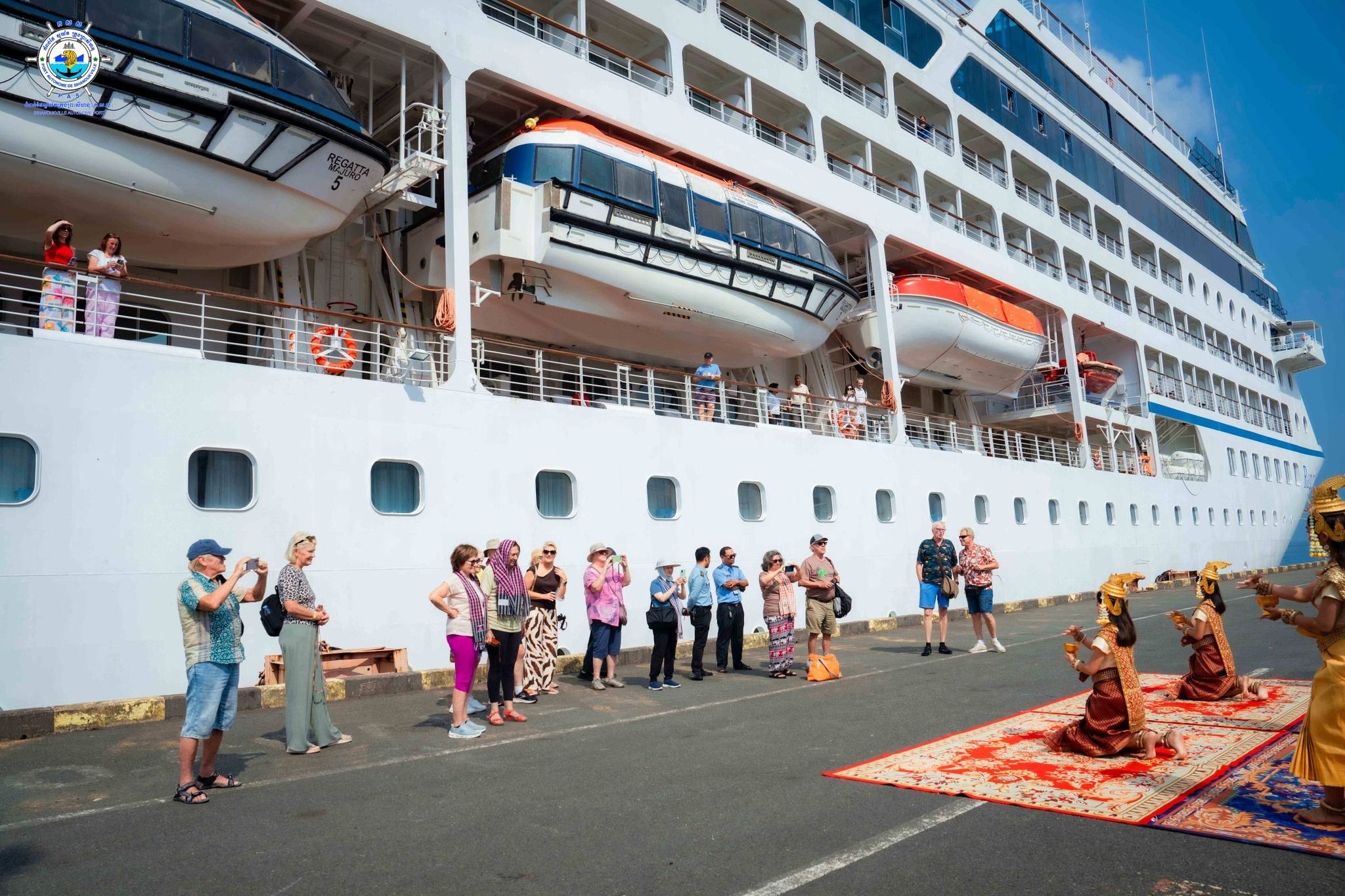 【柬埔寨头条综合报道】据柬媒报道,2026年1月31日,西哈努克市迎来600余名国际游客,他们乘坐名为“REGATA”号的邮轮抵达柬埔寨。 根据西哈努克自治港发布的消息,当天上午9时40分,“REGATA”号邮轮安全停靠西港。该邮轮为马绍尔群岛籍,船长180.45米,船宽25.46米,吃水深度6米。本次航程自泰国出发,在柬埔寨停靠为期一天。 据了解,该邮轮共载有396名船员,其中女性106人,分别有43个国籍;船上共有641名游客,其中女性335人,分别有23个国籍。游客主要来自美国和加拿大,其中美国游客341人,加拿大游客93人。 按计划,“REGATA”号邮轮将于当日19时启程,前往下一站越南。 |