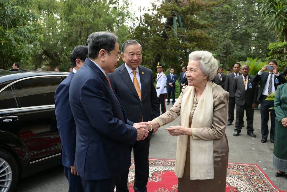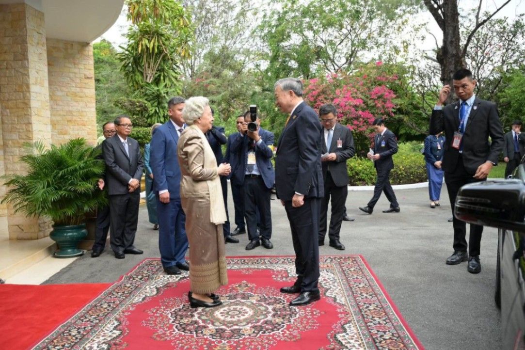 【柬埔寨头条综合报道】据柬埔寨媒体报道,2月6日下午,在对柬埔寨进行国事访问期间,越南共产党中央总书记苏林前往王宫,觐见柬埔寨国母莫尼列。 报道称,当日上午,西哈莫尼国王已依据宪法相关规定,正式授权参议院主席、国王高级顾问团主席洪森亲王代行国家元首职权,并在王宫接待来访的越南共产党中央总书记苏林及其高级代表团。 此外,洪森亲王还与越方代表共同出席了柬埔寨人民党外交事务委员会与越南外交部党委签署谅解备忘录的仪式,进一步推动两国党际交流与合作。 |