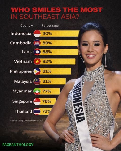 【柬埔寨头条综合报道】据本地媒体报道,在东南亚地区"微笑指数"排名中,柬埔寨紧随印度尼西亚位列第二,而被誉为"微笑之国"的泰国竟排名垫底。根据盖洛普全球情绪调查数据显示,印度尼西亚以90%受访者表示经常微笑 ...