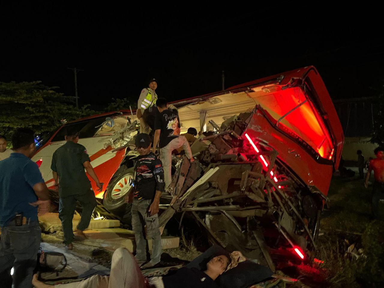 【柬埔寨头条综合报道】据柬媒消息,2月12日凌晨,磅清扬省罗列别县5号公路79-80公里路段发生一起严重交通事故,造成2人死亡、4人受伤。 警方报告指出,事发前一辆货车由南向北行驶,行至事发路段时突然追尾前方一辆客运车辆,猛烈撞击导致车辆失控翻覆并坠入路旁水沟。 事故发生后,两名涉事司机弃车逃离现场。警方接报后迅速赶赴现场处置,确认有2人当场死亡,另有4人不同程度受伤。伤者已被紧急送往医院接受治疗。 目前,涉事车辆已被拖回磅清扬省警察局暂扣保管,警方正进一步展开调查,并追查两名逃逸司机的下落,以依法处理。 |