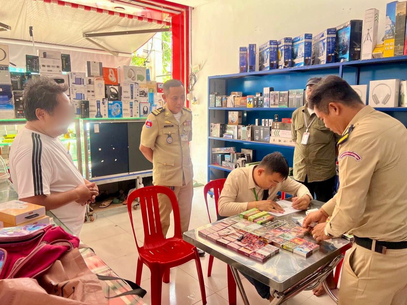 【柬埔寨头条综合报道】据柬媒消息,在暹粒省警察局领导层的直接指导下,该局禁毒警方对位于暹粒市的一处营业地点进行了突击执法检查。 在行动中,警方现场查获共计101盒电子烟及配套烟弹,并依法传唤了该营业点的40岁男业主接受询问。 目前,暹粒省警方已将上述违禁证物悉数扣押,以待后续依法处理。同时,警方已要求该业主签署教育承诺书,责令其立即停止一切有关水烟、电子烟及加热不燃烧烟草制品(HTPs)的流通、贸易及进口行为。 (编译:影子) |