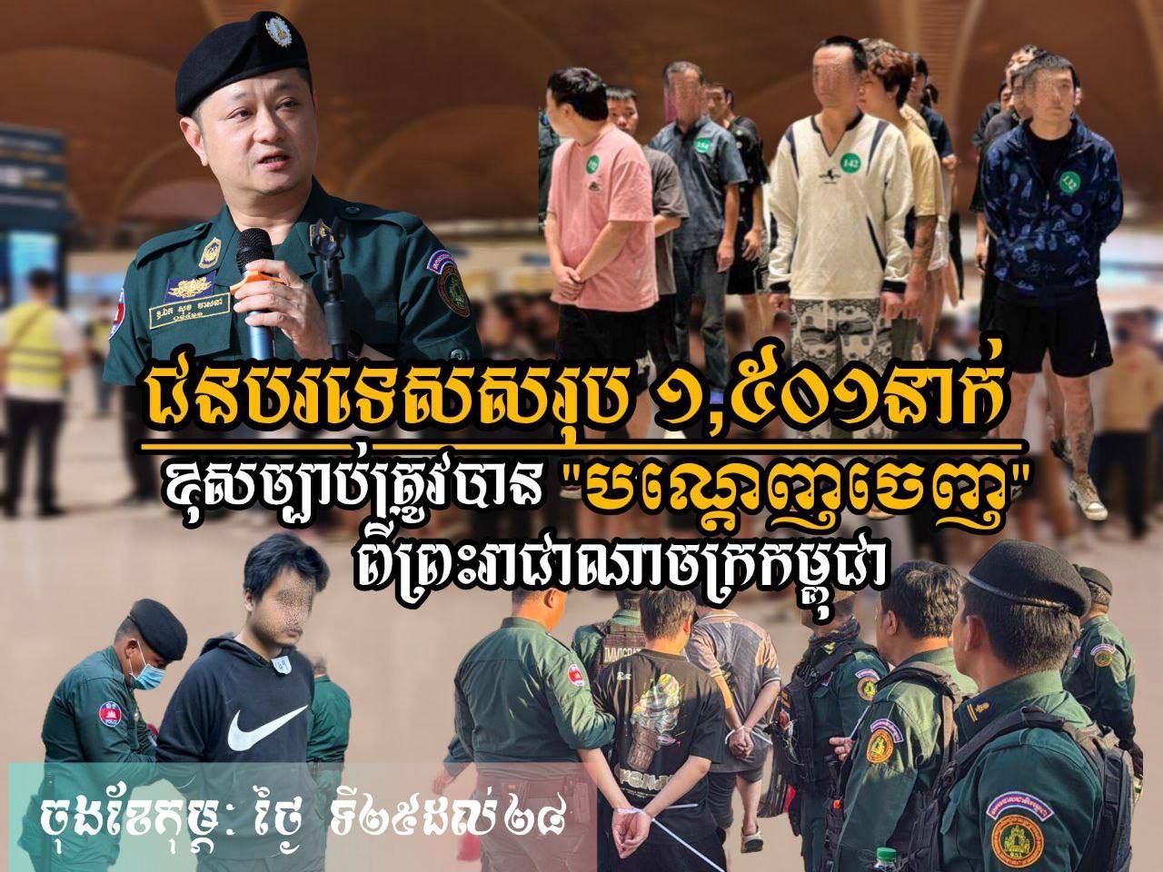 【柬埔寨头条综合报道】据本地媒体报道,2026年2月底(2月25日至28日),由柬埔寨移民总局局长索维斯纳中将下令,移民局调查执法局继续驱逐共计1501名外国人(其中162名为女性)。上述被驱逐出境的外国人均是违法者 ...